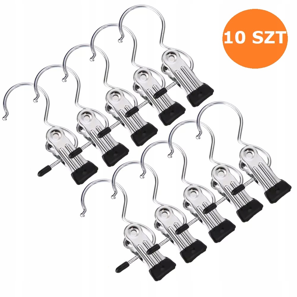 POLMART Вішалка для одягу з одинарною кліпсою та пряжкою ХРОМ, уп. 10 шт.