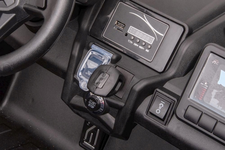 Дистанционное управление, работающее при 2,4 ГГц - с функцией испарения - это означает, что никакие другие устройства не будут мешать им, пульт дистанционного управления имеет 3 скорости от дистанционного управления, и функция немедленной аварийной остановки транспортного средства - (кнопку p после нажатия его, все ручные функции в транспортном средстве блокируются - это очень хорошая функция, если нам нужно сразу остановить автомобиль, и блок. Решения в транспортных средствах, когда мы замечаем опасность, мы немедленно останавливаем автомобиль с p.