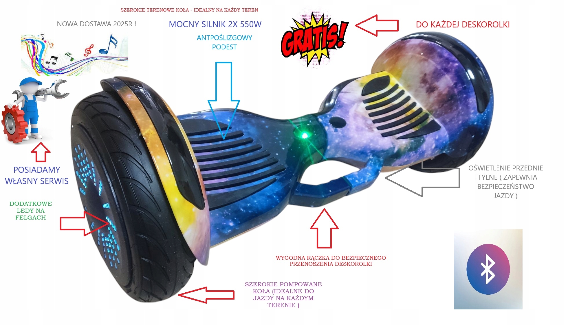 Большой электрический ховерборд 11 -дюймовый выключен, насосные колеса - светодиод, Bluetooth +бесплатно - цвета на выбор h1> - скейтборды продаются в течение нескольких лет !! /b>