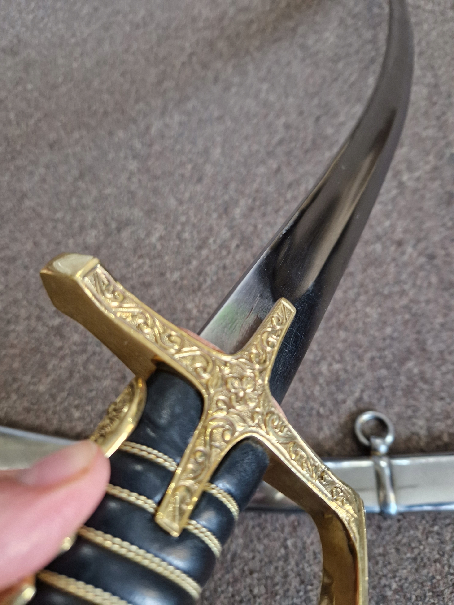 НОЖНИ: ПОЛИРОВАННАЯ УГЛЕРОДИСТАЯ СТАЛЬ (требует ухода). Ножны изнутри отделаны кожей. Вы можете хранить саблю в ножнах, не опасаясь коррозии.