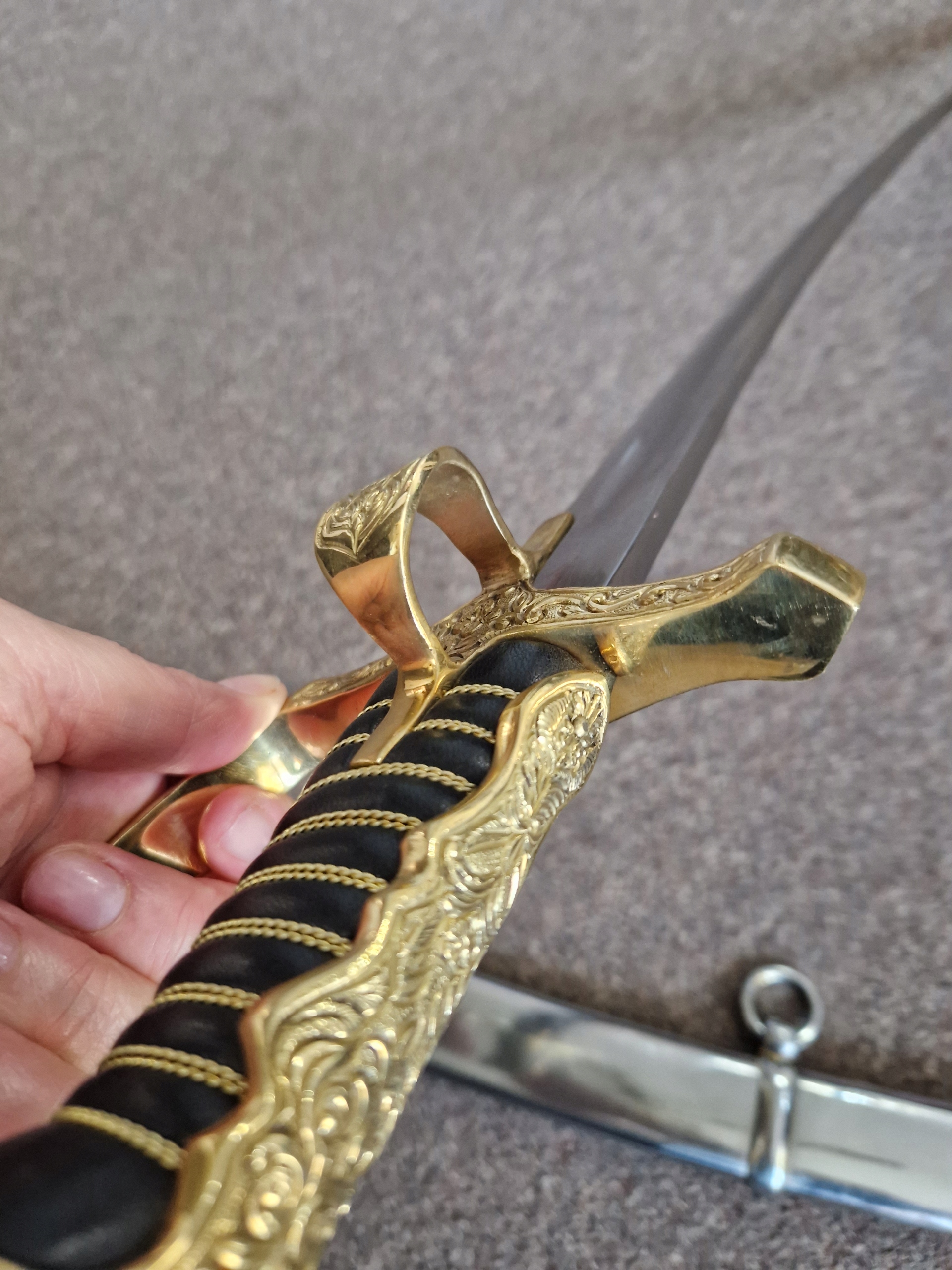 Сабля польская гусарская с пальцем и в ножнах, легкая учебная, сталь 1060 ПС-04 ПОВРЕЖДЕННАЯ