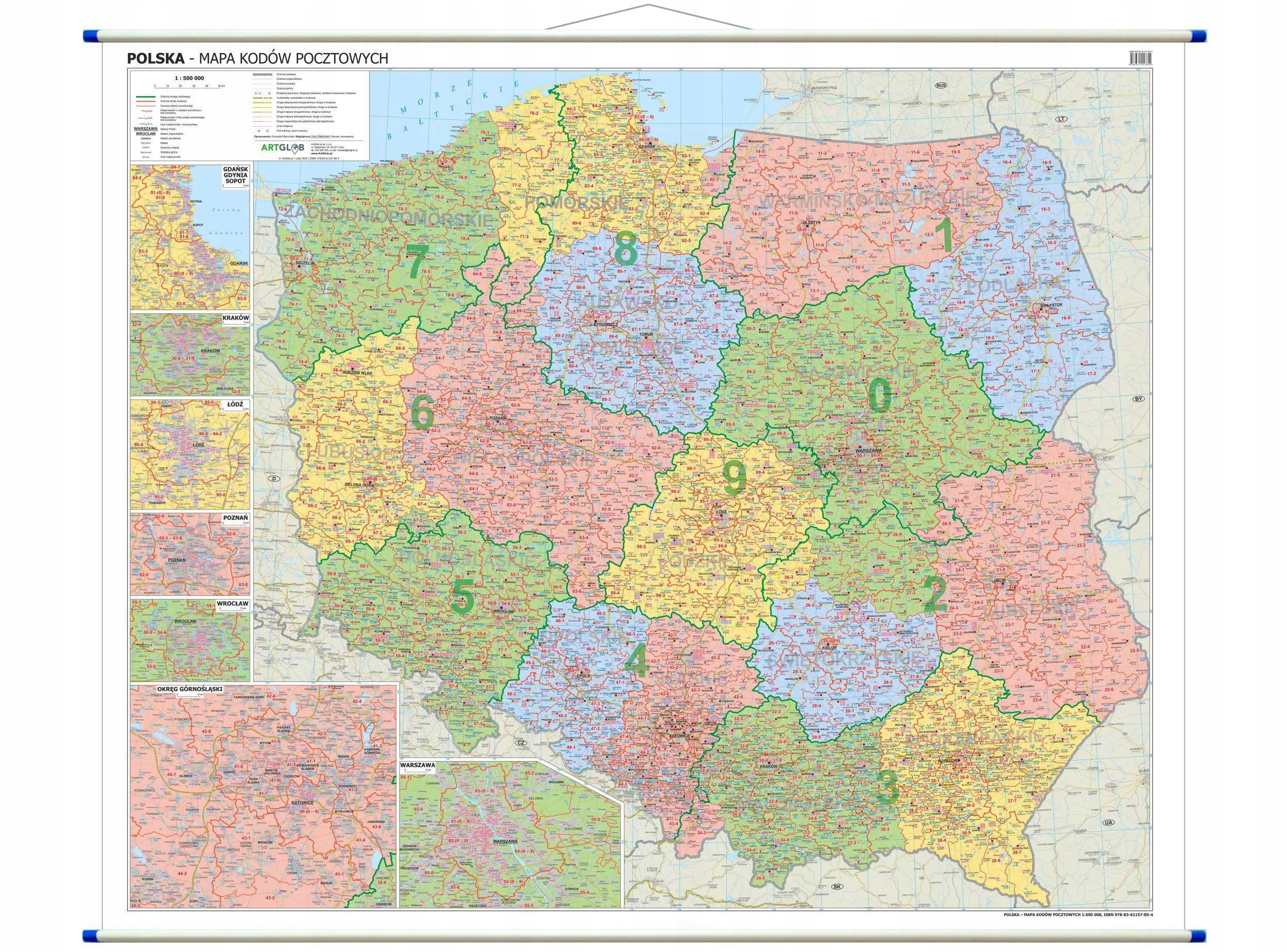 ➡polska Административная и Drogowa Wall Map с почтовыми кодами по шкале 1: 500 000 была разработана авторитетным издательством Artglob