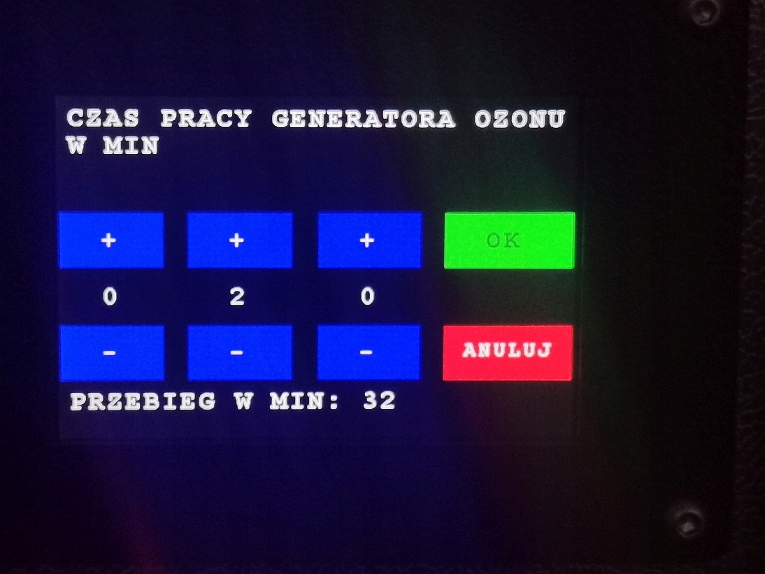 Экран настроек - ОЗОНАТОР ПЛАТИНОВЫЙ КВАРЦ