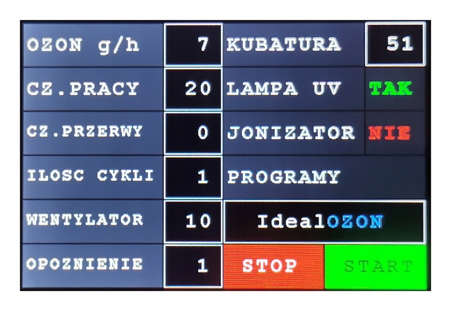 - Настройки Грамм ОЗОНА в диапазоне 8-80 г/ч
