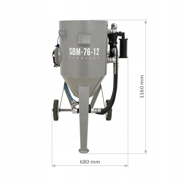 Предлагаемая многофункциональная потоковая машина - это профессиональное, безопасное и современное устройство польского производителя. Очистка оснащена давлением с коническим дном, облегчающим скольжение материала и спусковой крючок, который позволяет быстро опустошить резервуар от абразива. Высококачественный немецкий макро+ абразивный клапан характеризуется выше -средней механической прочностью и устойчивостью к истиранию по сравнению со стандартными клапанами, установленными в конкурентных компаниях. Управление чистящим средством легко и безопасно из -за расположения ручки управления в конце рабочего шнура. Несомненным преимуществом этого решения является возможность прерывания работы оператором, непосредственно выполняющим процесс песочной обработки, что продиктовано новейшими правилами здоровья и безопасности. Дизайн клапана устраняет необходимость использования дорогих мембран и поршней. Еще одним преимуществом использования макроэлектрозации в наших устройствах является способность точно распределять любой тип абразивного материала - как кварцевые пески, так и стеклянные микрокулы, еда и керамические гранулы, а также наиболее агрессивные: корундум, электрокорунд, светящиеся, ореховые и грубые раковины, а также содовая в процессе соды. Примеры конфигурации очистителя SBM-76-12 H в кадре версии A.