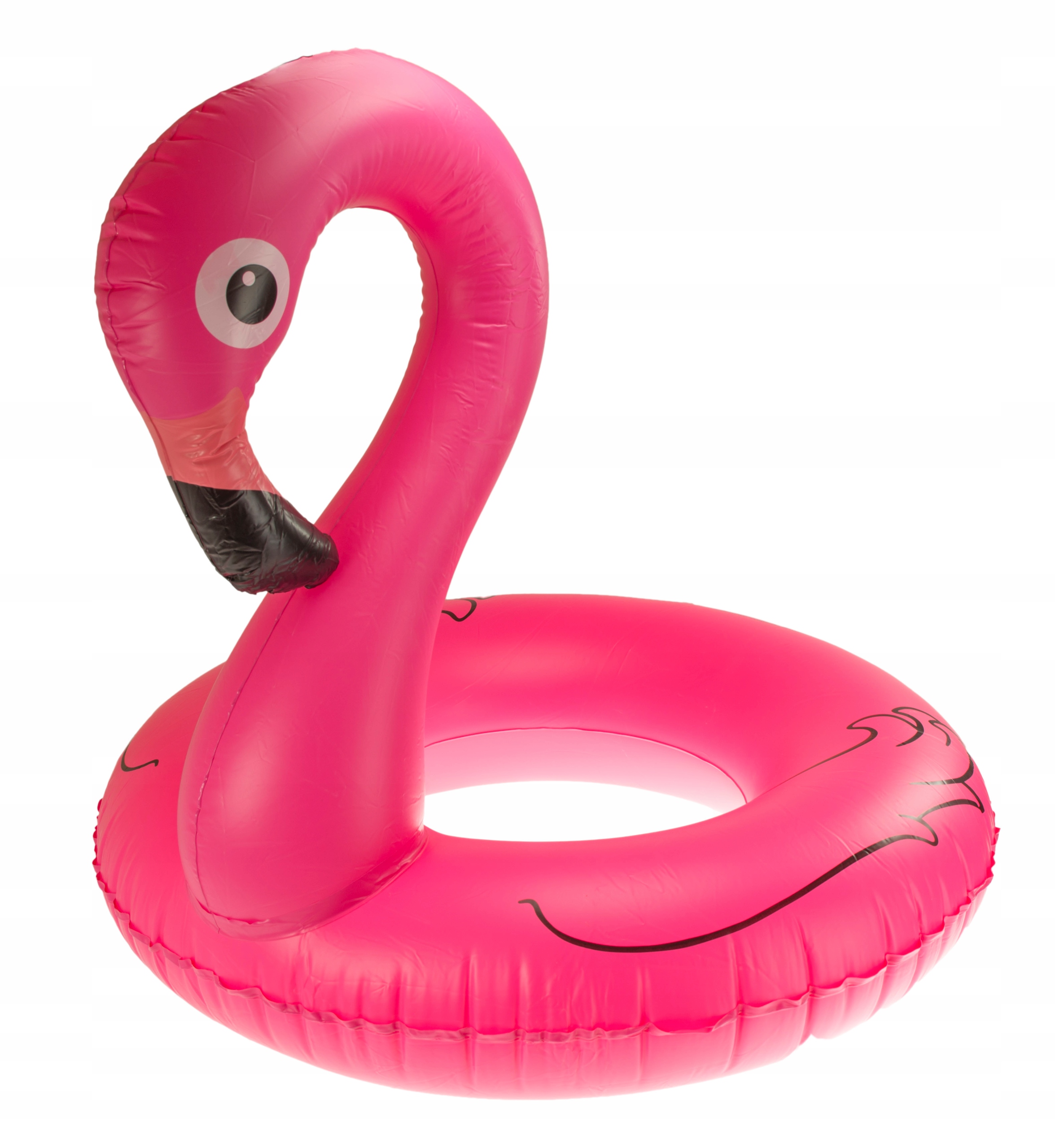 Красочное надувное кольцо в форме фламинго, изготовленное из высококачественного ПВХ-пластика, гарантирующее долговечность.