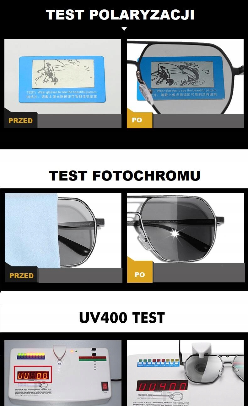 ✅ Очки имеют сертификат качества ce и соответствуют европейскому стандарту EN ISO 12312-1: 2013, признанный как польский стандартный PN-EN ISO 12312-1: 2014-02.