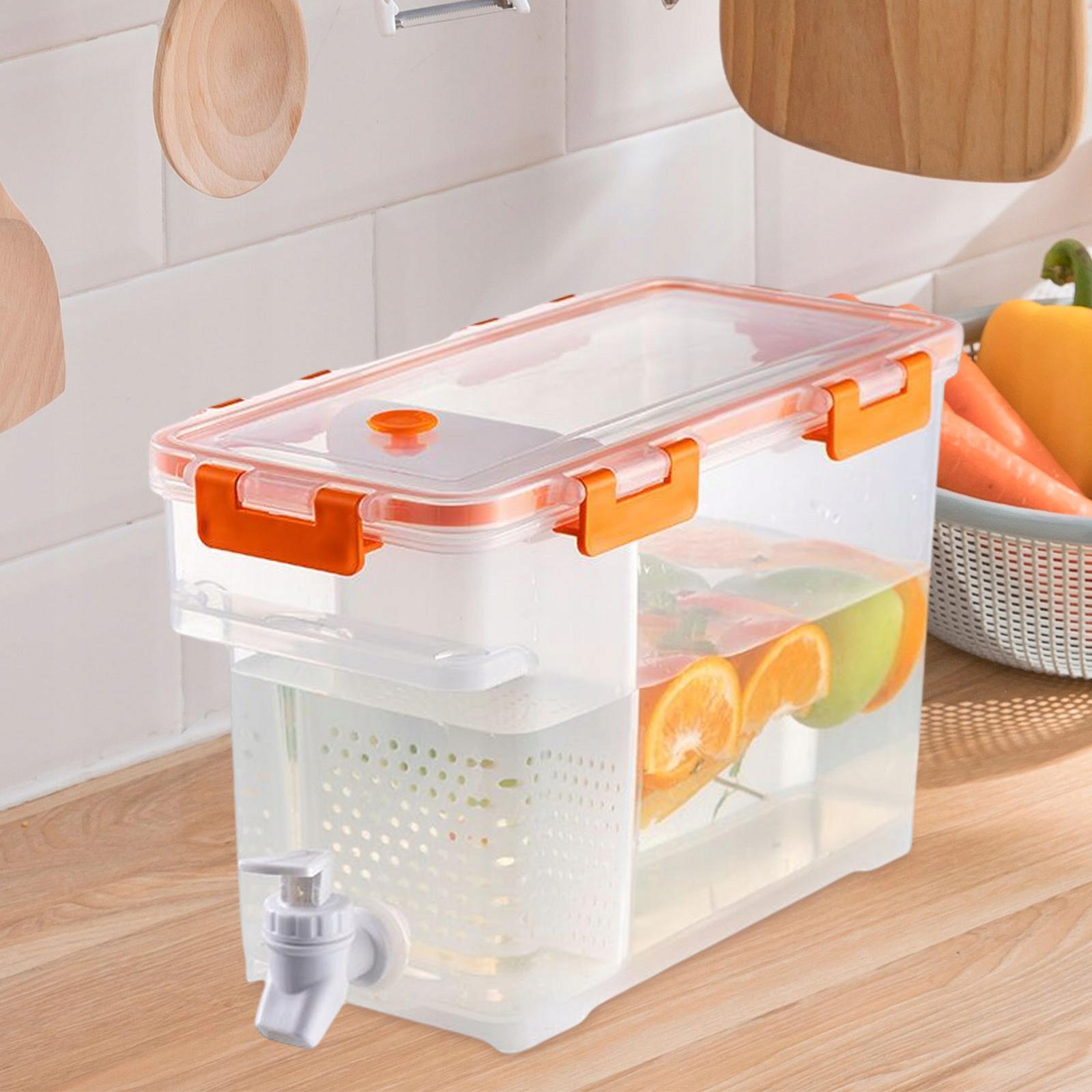 Бытовой чайник для холодной воды с краном Чайник для фруктов Ведро с водой Оранжевый кувшин для воды