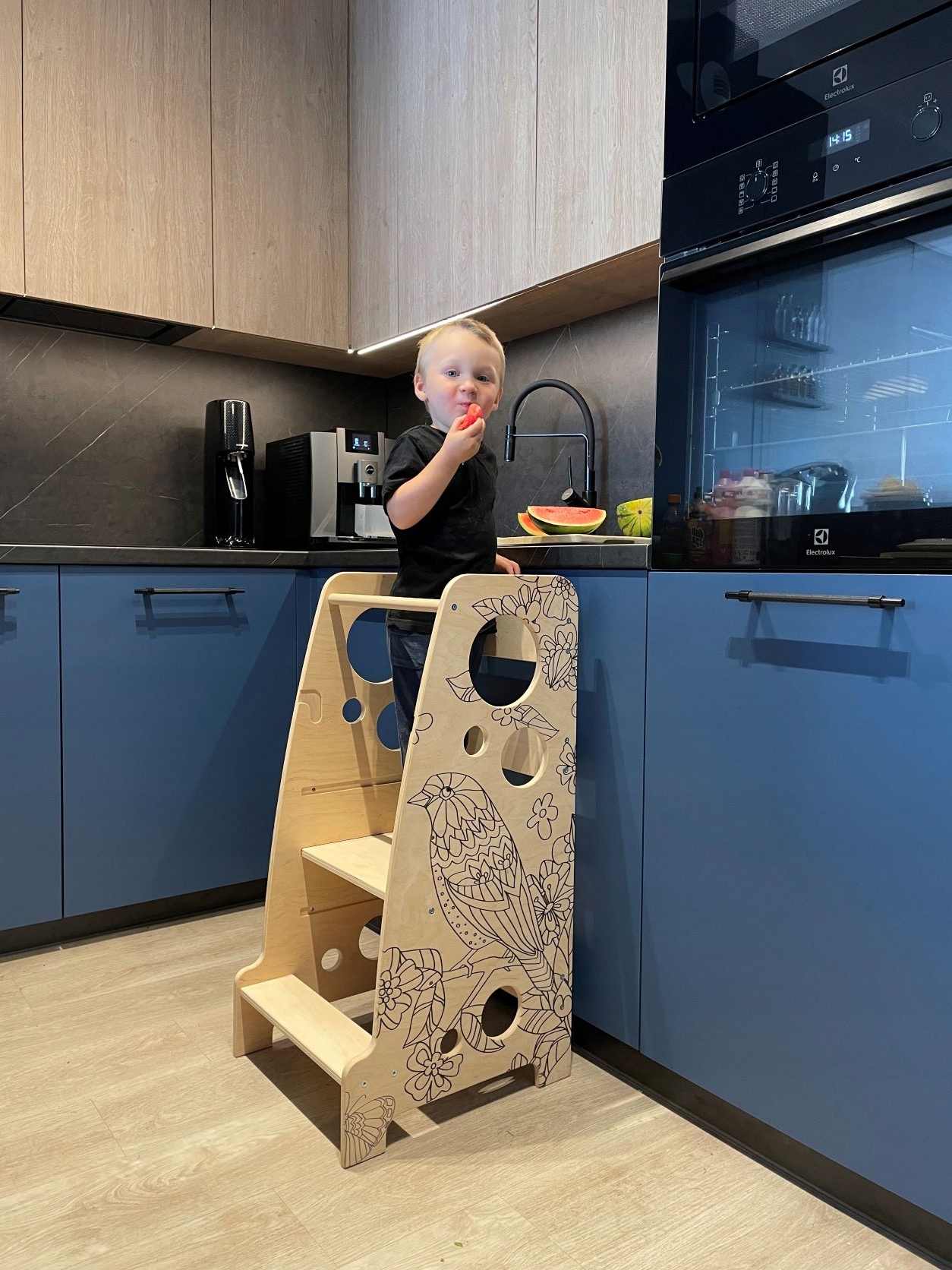 Выберите нашего надежного, стабильного и, самое главное, безопасного кухонного помощника. Положительно влияет на развитие и социализацию за счет активного участия в семейной жизни.