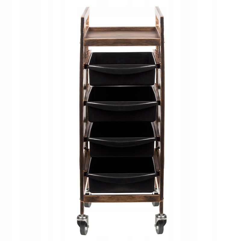Двусторонний парикмахерский помощник цвета старого золота, с 4 подносами и держателями для парикмахерских принадлежностей. Стабильная конструкция обеспечивает долгосрочное использование. Стол установлен на прорезиненных колесах, благодаря чему инструменты всегда будут под рукой. ,