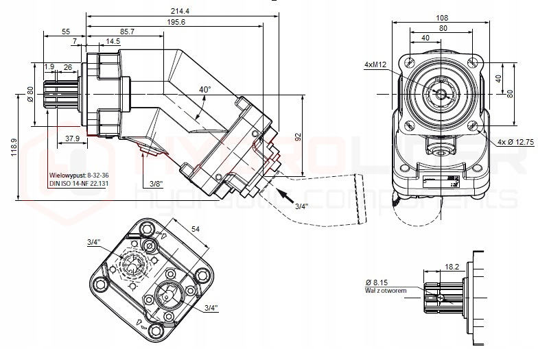 7-поршневая конструкция, наклон оси поршня относительно оси вала 40°. Компактная и компактная конструкция, передний подшипник также центрирует насос. Крепление крепления Фланец ISO крепится с помощью 4 винтов с шагом 80x80 мм; Центральный замок 80мм, шлицевой вал 8-32-36, задние масляные каналы, всасывающее отверстие под 45° в комплекте.