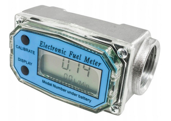 Современный электронный расходомер жидкости, предназначенный для использования в мастерских, домашнем хозяйстве и фермерских хозяйствах. Чтобы счетчик можно было использовать в разных странах, он оснащен четырьмя единицами измерения: литры (LTR), галлоны (GAL), пинты (PT) и кварты (QT). Аккумулятора хватает примерно на 9000 часов работы. Он имеет две кнопки: калибровка (CALIBRATE) и отображение (DISPLAY). Разъемы в комплекте.
