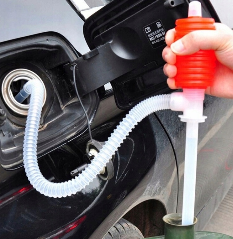 - Очень прост в использовании, достаточно погрузить один конец насоса в жидкость, вставить выпускной шланг в емкость и нажать на верхнюю часть насоса.