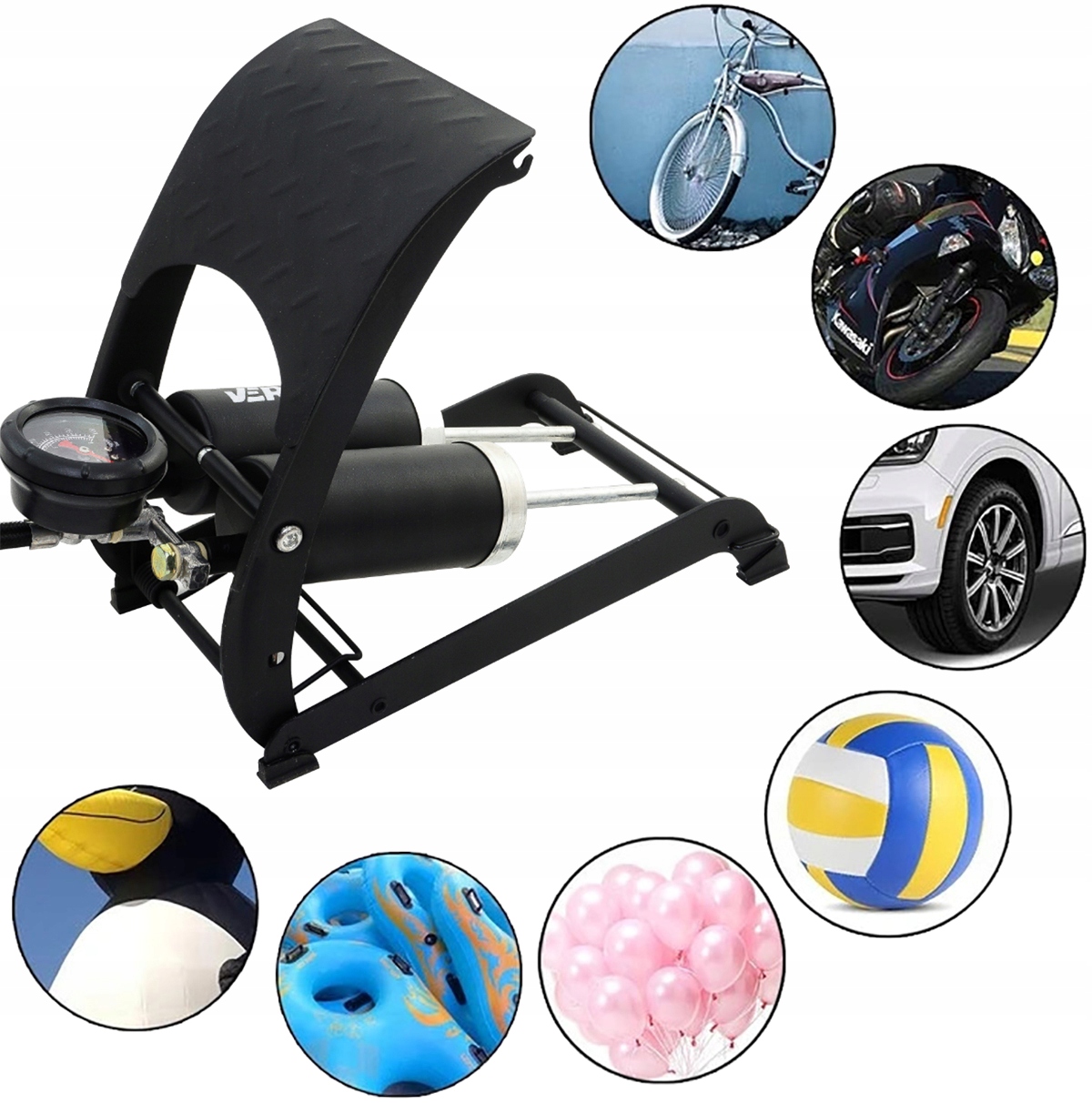 Насос с манометром спроектирован как автомобильный насос. Манометрический насос можно использовать для многих других целей. Он также служит насосом для стационарного велосипеда и мотоцикла. При необходимости для надувания спортивного инвентаря и детских игрушек.