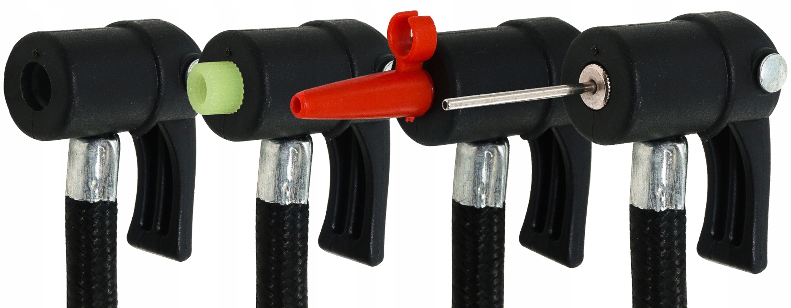 Благодаря прилагаемым дополнительным насадкам вы можете легко наполнить воздухом велосипедные колеса, мяч или надувной матрас.