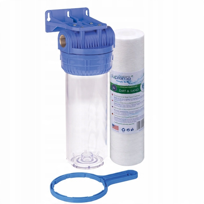 Корпус доступен с латунным соединением диаметром 1 дюйм и вентиляционным отверстием, которое помогает выпустить скопившийся в фильтре воздух. после замены фильтрующего картриджа.
