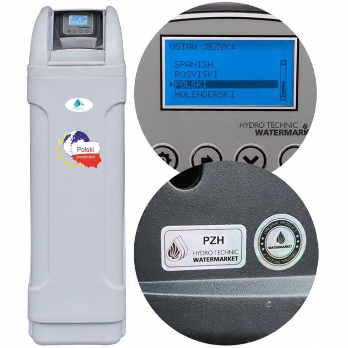 - оснащены современным регулирующим клапаном: HYDRO PREMIUM с меню на польском языке, который позволяет работать в экономичном режиме регенерации UP-FLOW, li>