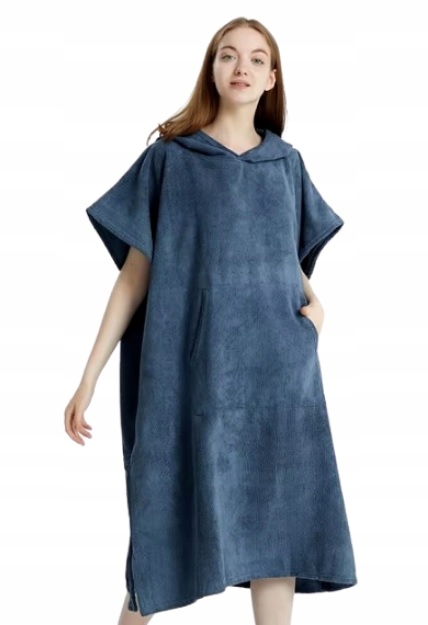 ПОНЧО ДЛЯ ПРОГУЛКИ, ПОЛОТЕНЦЕ С КАПЮШОНОМ, КУПАЛЬНИКИ ДЛЯ ПЛЯЖА, БАССЕЙНА, ХАЛАТ МУЖСКОЙ ЖЕНСКИЙ, ТЕМНО-СИНИЙ, БЕЗ РУКАВОВ