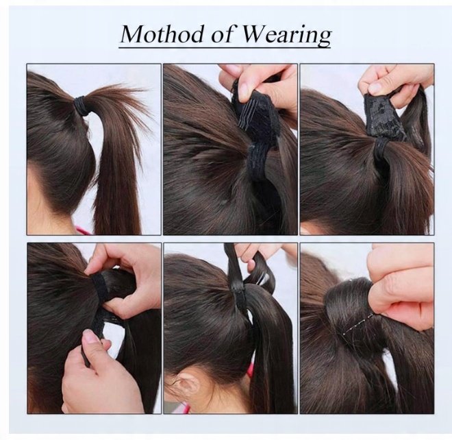 - [Хвост -кол махнул, как настоящие волосы]. Подобные человеческим волосам, пластиковые волокна могут скручиваться после 2-3 оружия узлов, потому что пластиковые волокна статически загружаются. Чтобы растянуть запутанные волосы, вылейте немного воды в бутылку с брызгом, распылите наращивание волос, а затем почистите широкую расческу из конец до корня.