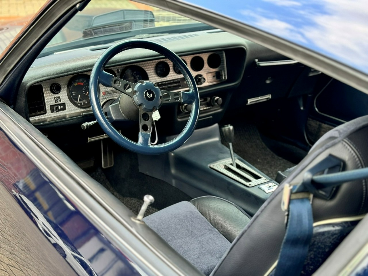 Trans Am получили новый интерьер в черном и синем теле, который подходит для тела. Обинка была заменена кожей и алькантарой, были: новый хедлайнер, новые ковры, отремонтированные планки, новые пороги, новые уплотнения, резина и т. Д. Очень хорошая панель приборной панели с чистыми часами, заводские тахометра, электрические окна, радио-кассет, стекло с антенной, с задними окнами с опцией с Antenna Defrost