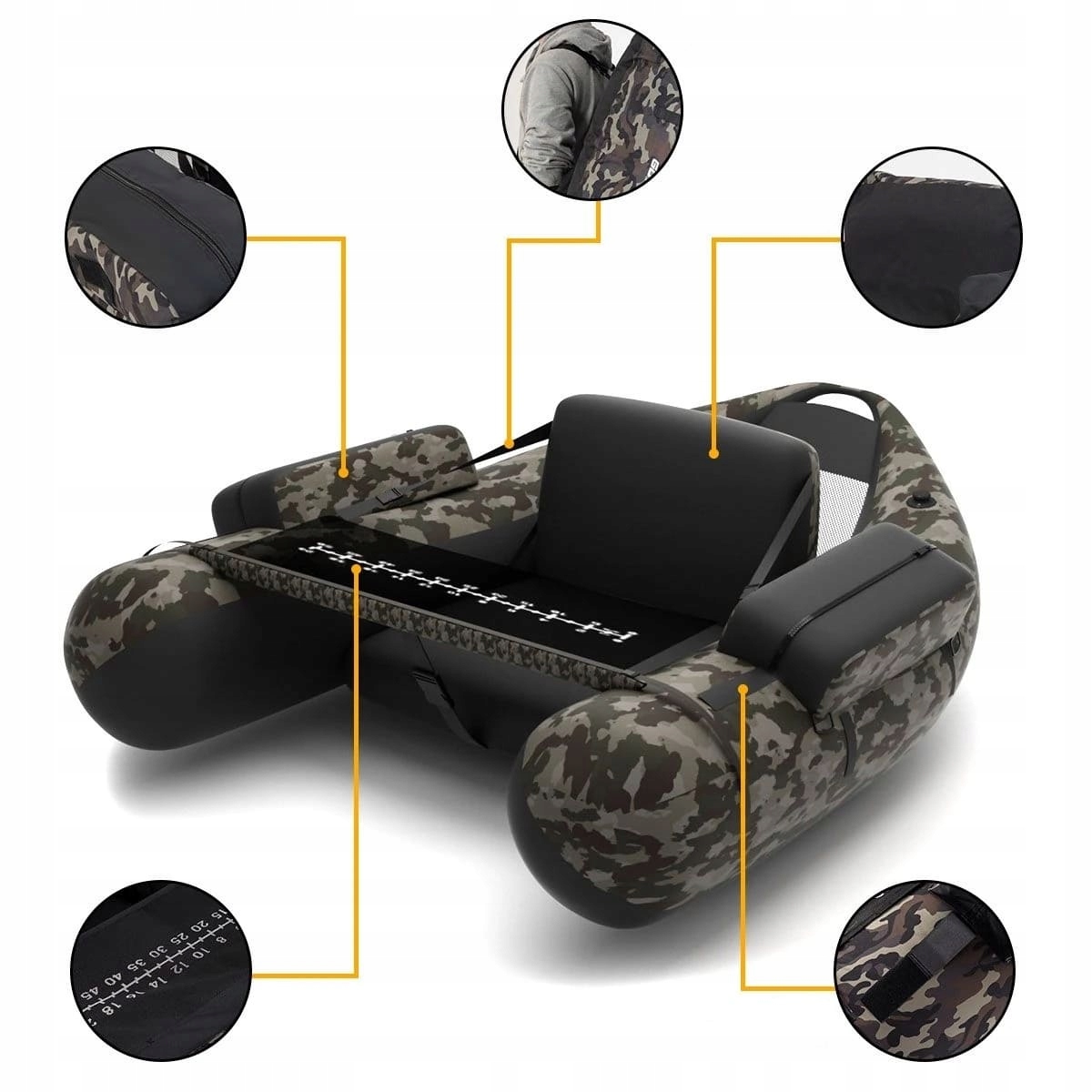 Высокая нагрузка и высокое смещение : Понтон имеет высокое смещение и грузоподъемность 160 кг, что обеспечивает безопасную промысел. На задней части сиденья есть сетка, где вы можете хранить рыбалку.