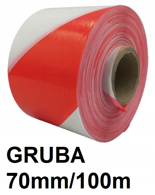 Предупреждающая лента 70 мм 100 м белая и красная сильная толстая без клей