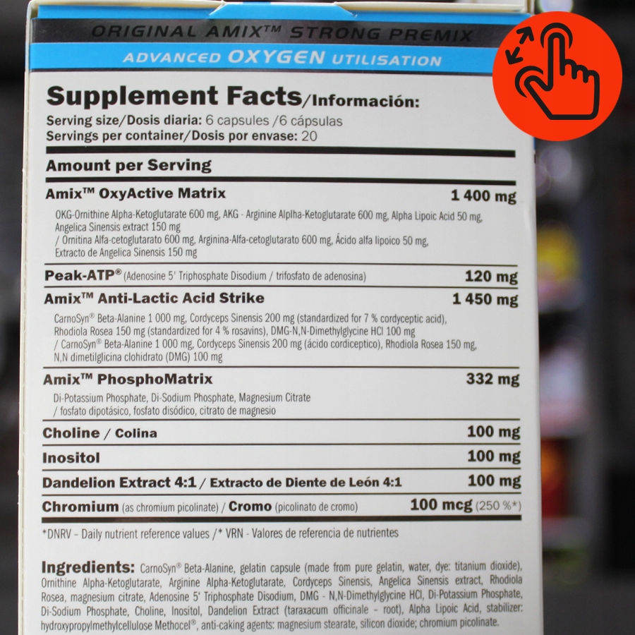 Amix Anti-Lactic Acid Strike – классическая и проверенная смесь активных ингредиентов, целью которой является задержка и снижение выработки вредной молочной кислоты. Список ингредиентов открывается:
