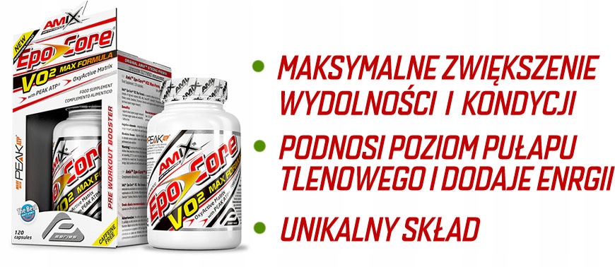 Отличная смесь до 17 активных ингредиентов, которые в сочетании значительно увеличивают мышечную работоспособность и объем легких. Он отлично работает в любой спортивной дисциплине, предполагающей длительные физические нагрузки. Велосипедисты, бегуны и пловцы получат наибольшую пользу от приема этой добавки перед тренировкой. Его также можно использовать в единоборствах, кроссфите или интенсивных тренировках по бодибилдингу. Amix Epo Core VO2 — это уникальный и превосходный препарат перед тренировкой, который определенно выделяется среди конкурентов. Вы улучшите свои результаты и добьетесь гораздо большего, чем раньше.