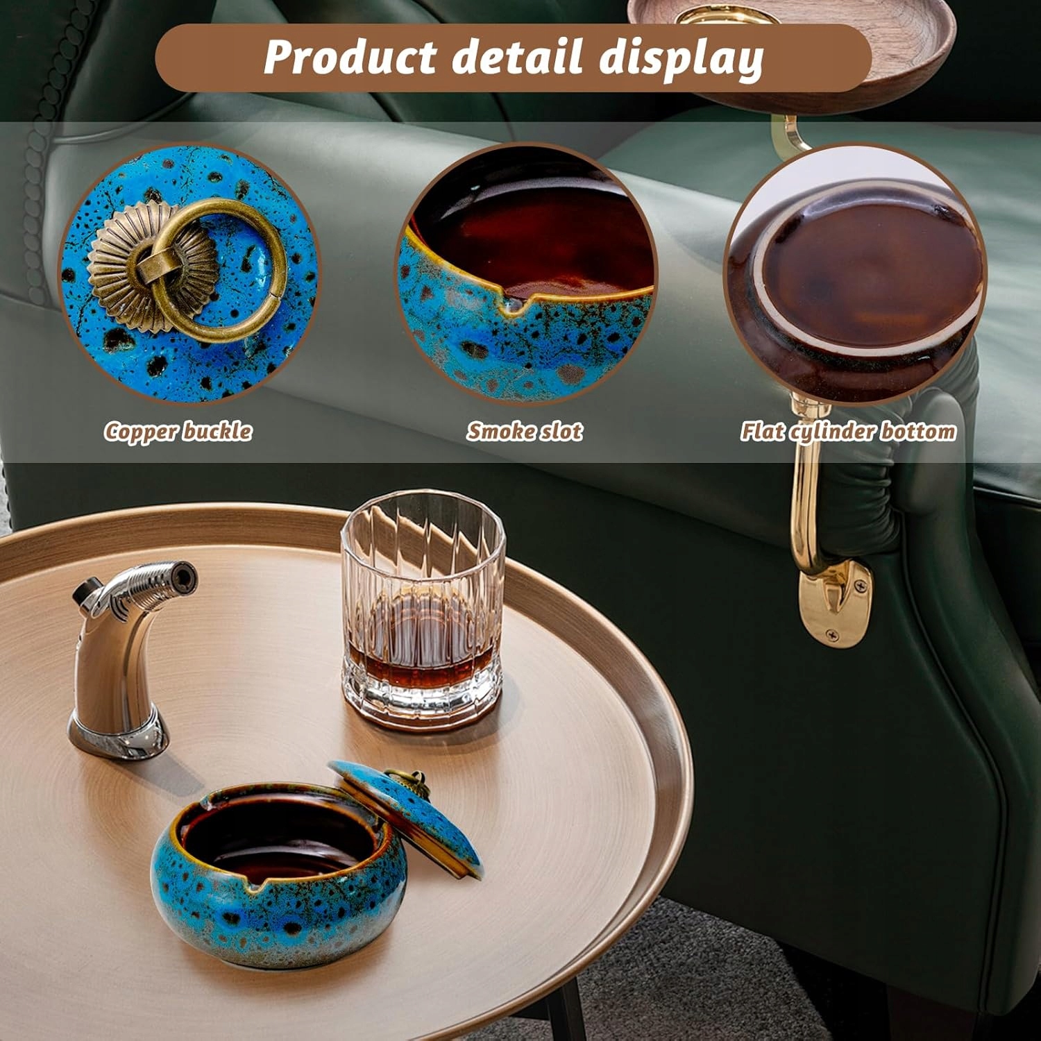 Керамическая пепельница с крышкой идеальна как в помещении, так и на улице, обеспечивая комфорт и порядок в любом месте. Его сбалансированная конструкция предотвращает скольжение, что повышает комфорт использования.
