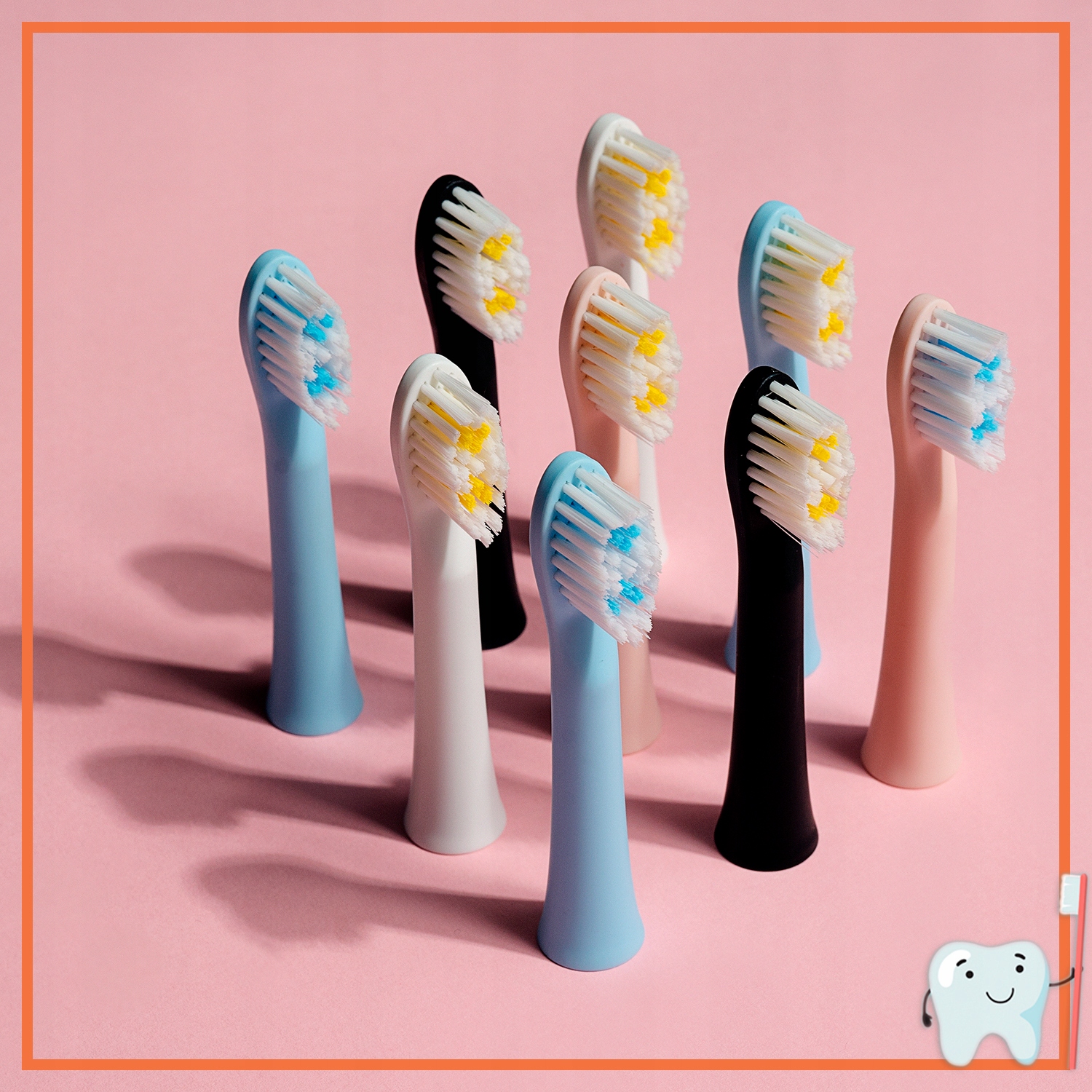 ✅ Выбор оттенков насадок позволяет подобрать их к зубной щетке или смешать и создать двухцветное устройство, что непременно заинтересует маленьких пользователей