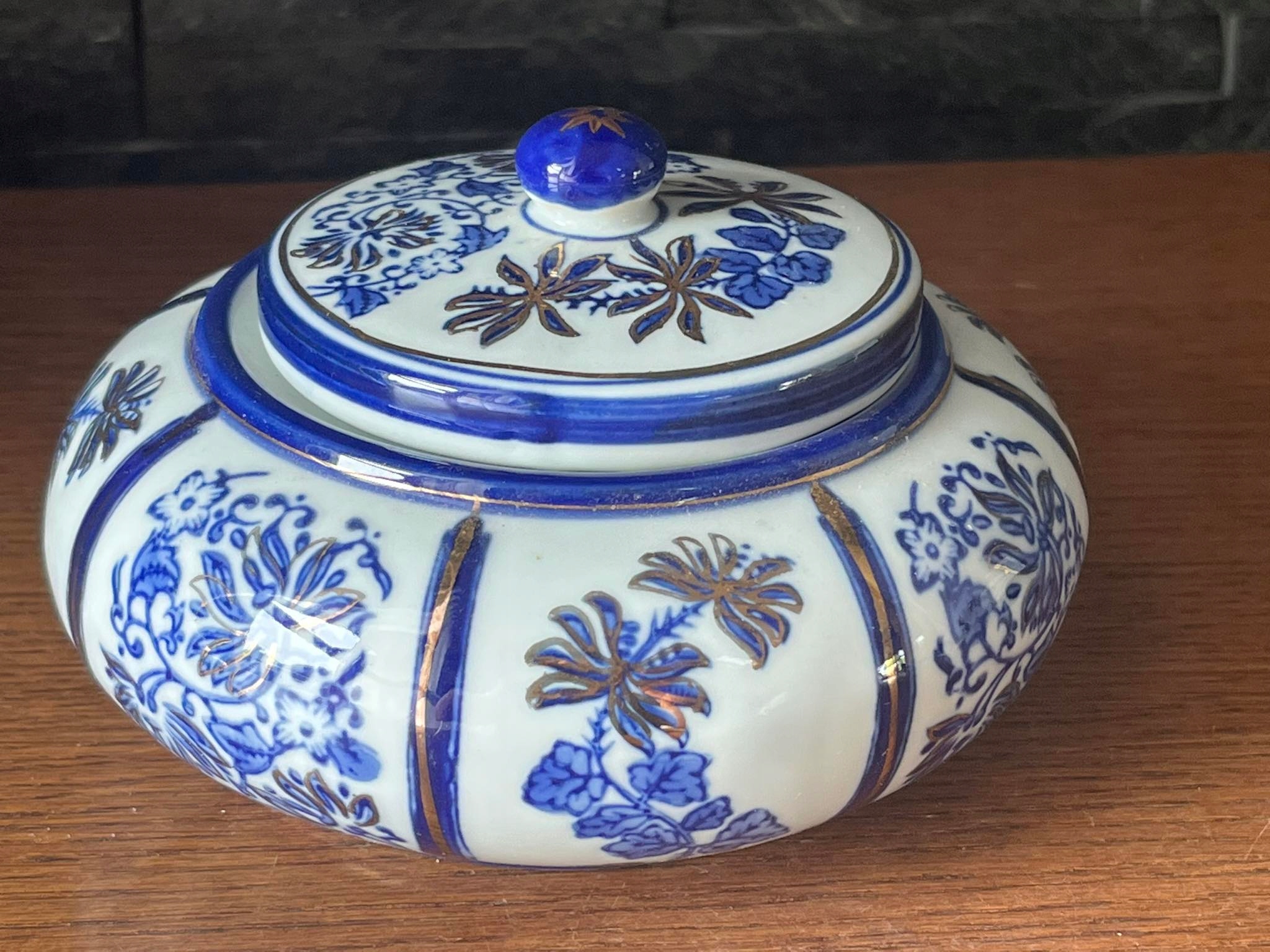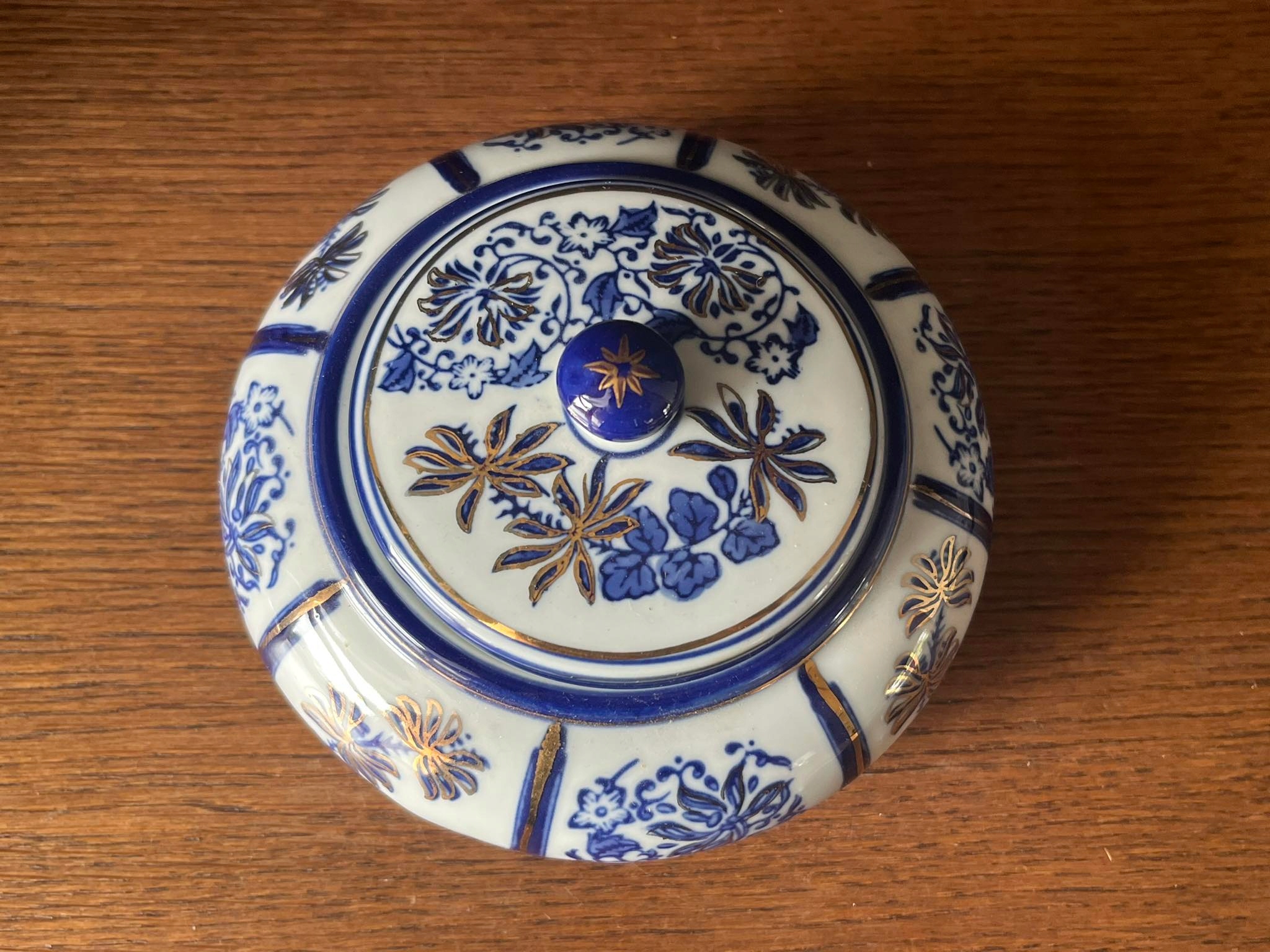 Porcelanowa bomboniera waza cukiernica złoto kobalt