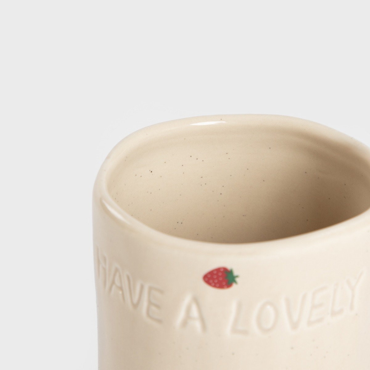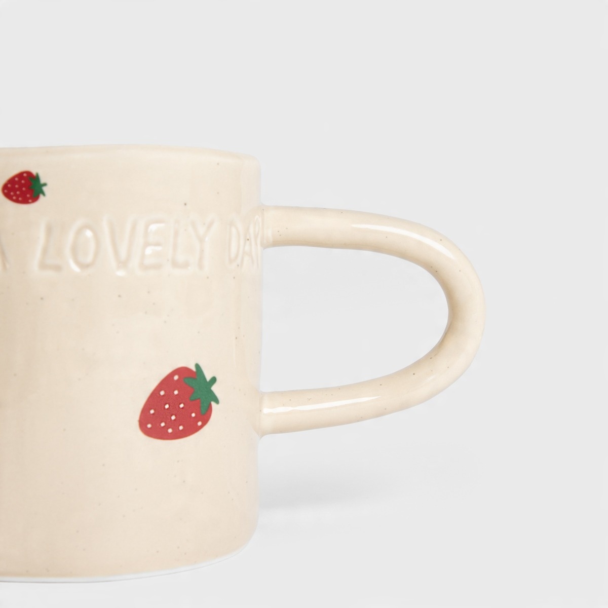 Кружка Isernia в клубнике - это ежедневная часть радости на вашей кухне. Его бежевая поверхность, украшенная сладкой, красной клубникой и прессованной надписью «Имеет прекрасный день», вводит идиллическую атмосферу и позитивную энергию. p>