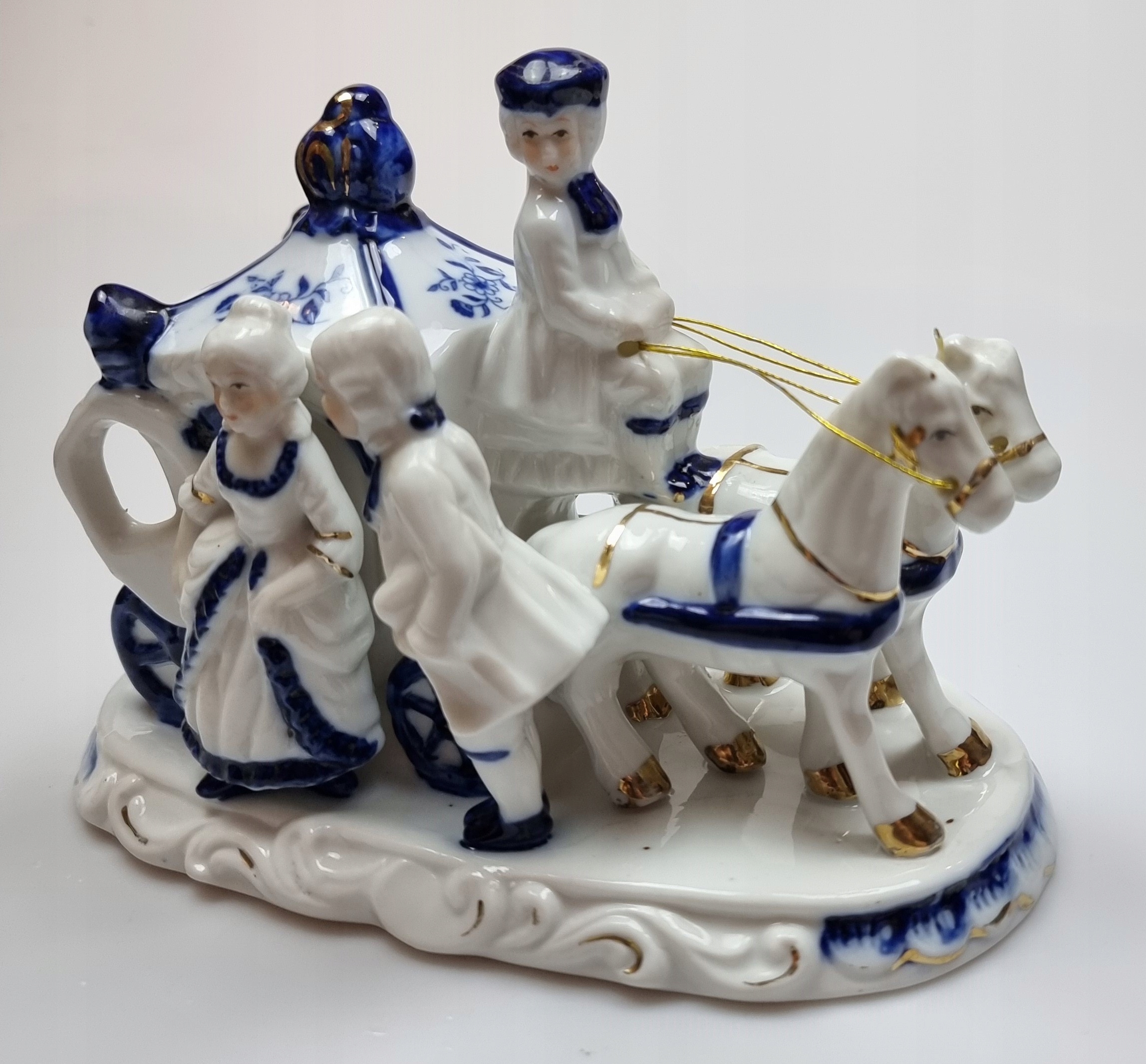 Порцелянова статуетка, карета, карета, кобальтова франція?
