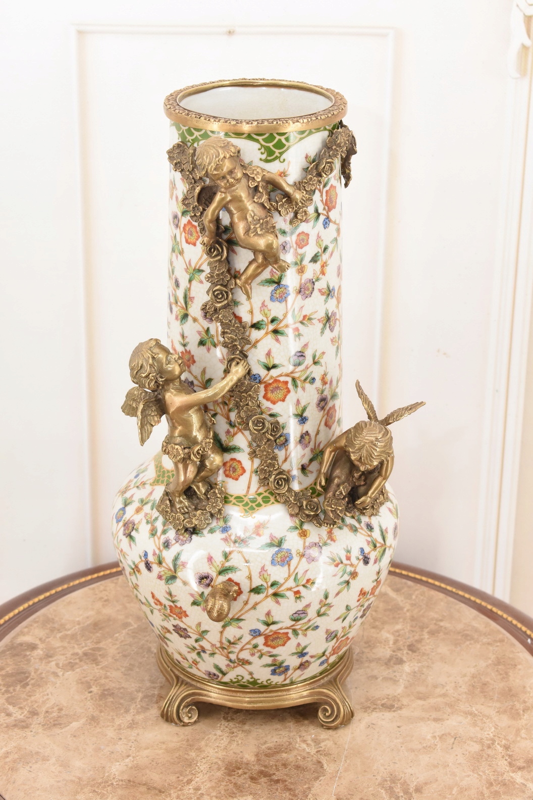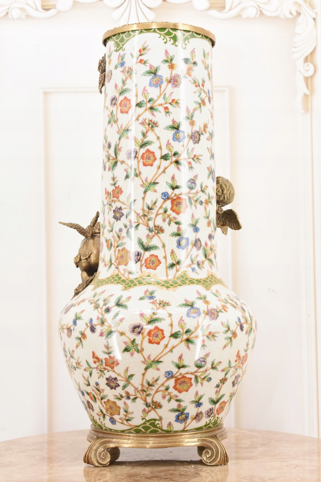 Фарфоровая ваза Три ангела - Цветы Амори - Чашка-амфора, бронзовый фарфор