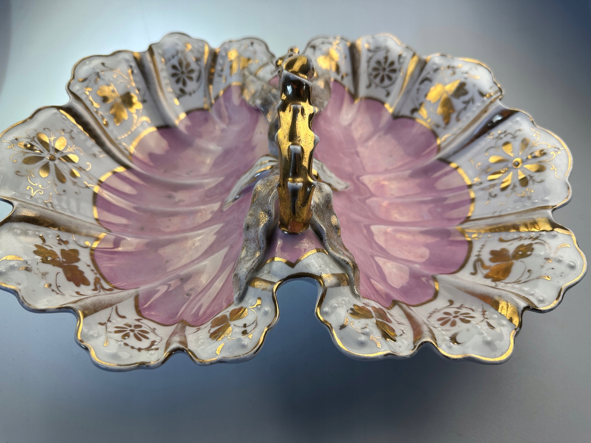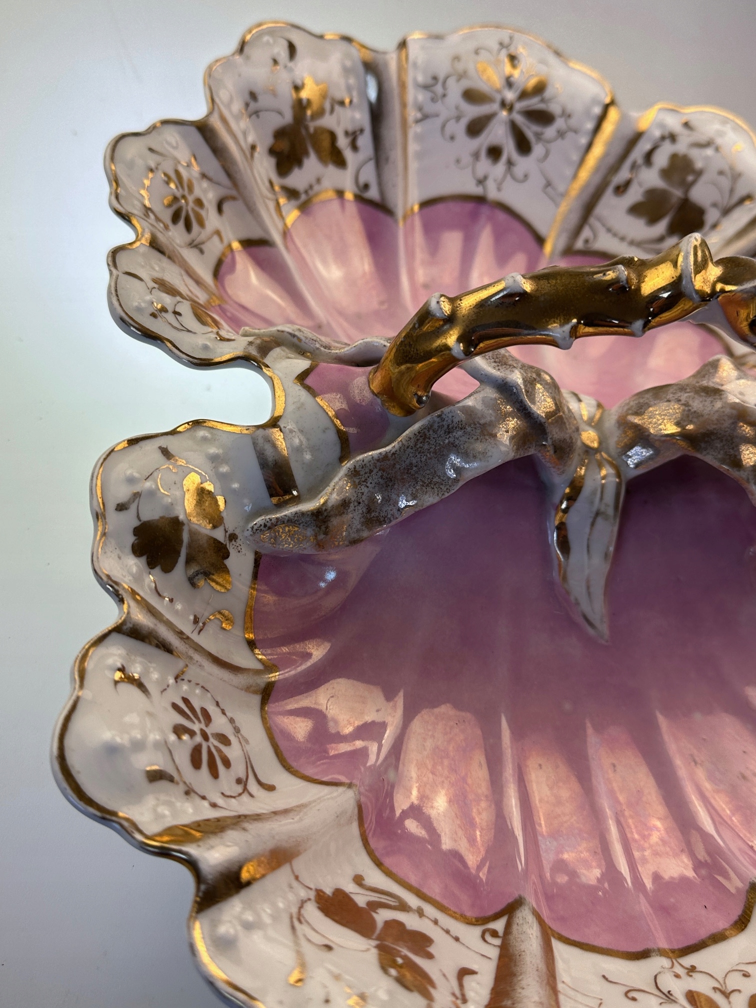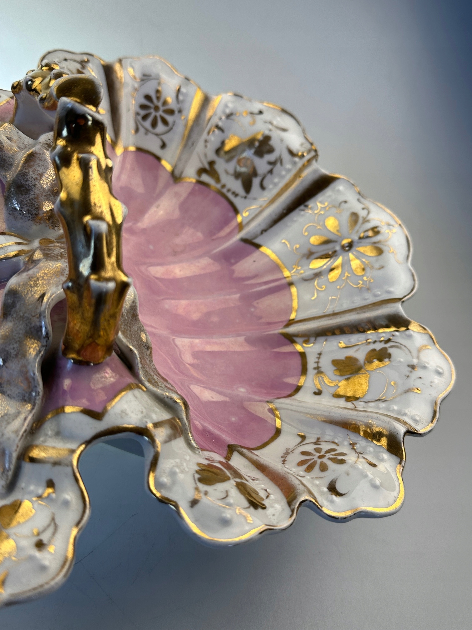 Фарфоровая подставка для торта-кабаре Śląsk ? КПМ? декоративные золотисто-розовые листья