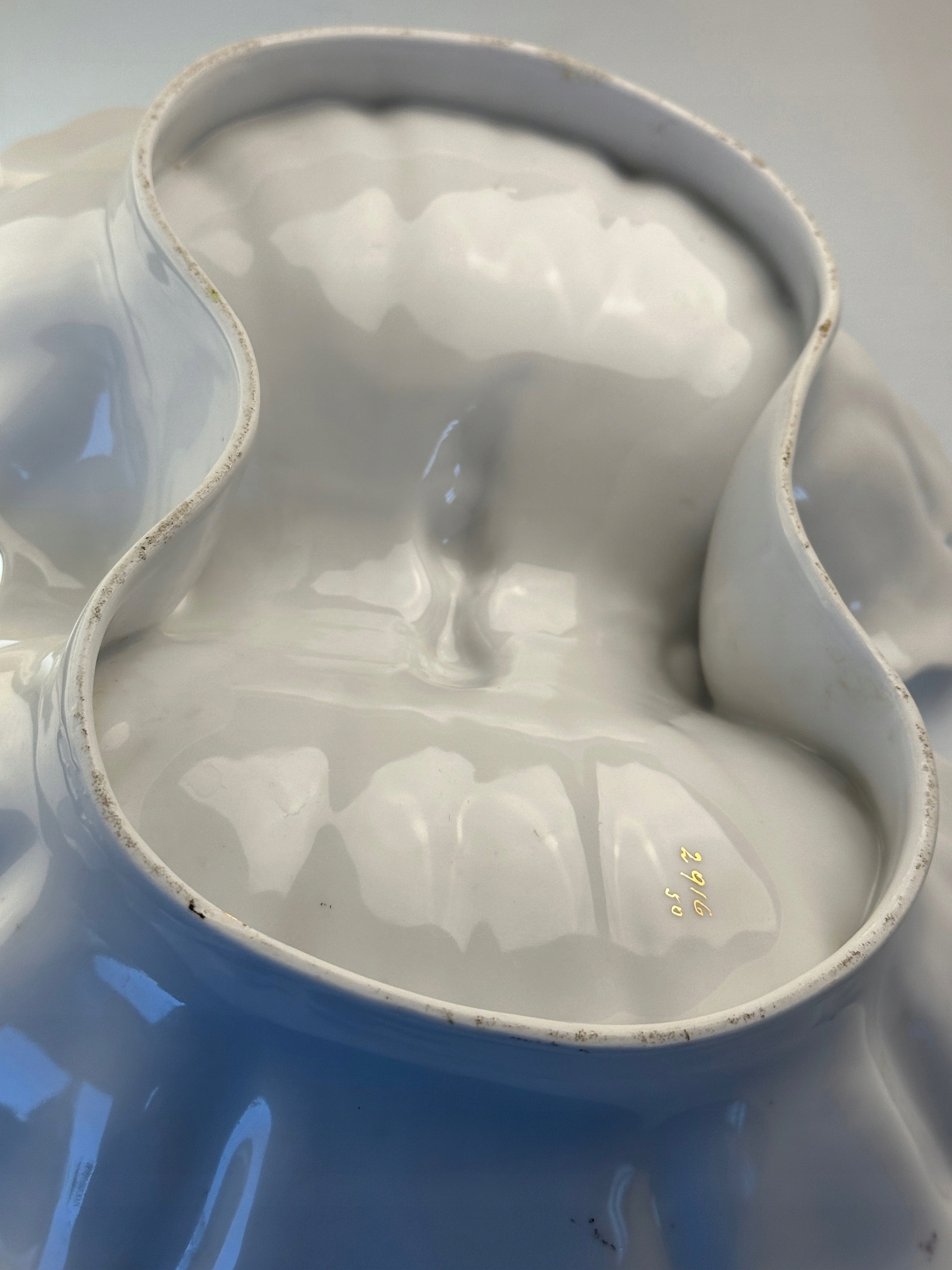 Состояние видно на фотографиях, потертости поверхностей, без дефектов, миниатюрный дефект по краю основания, очень декоративен. Нумерованная подпись, без глазурованной подписи