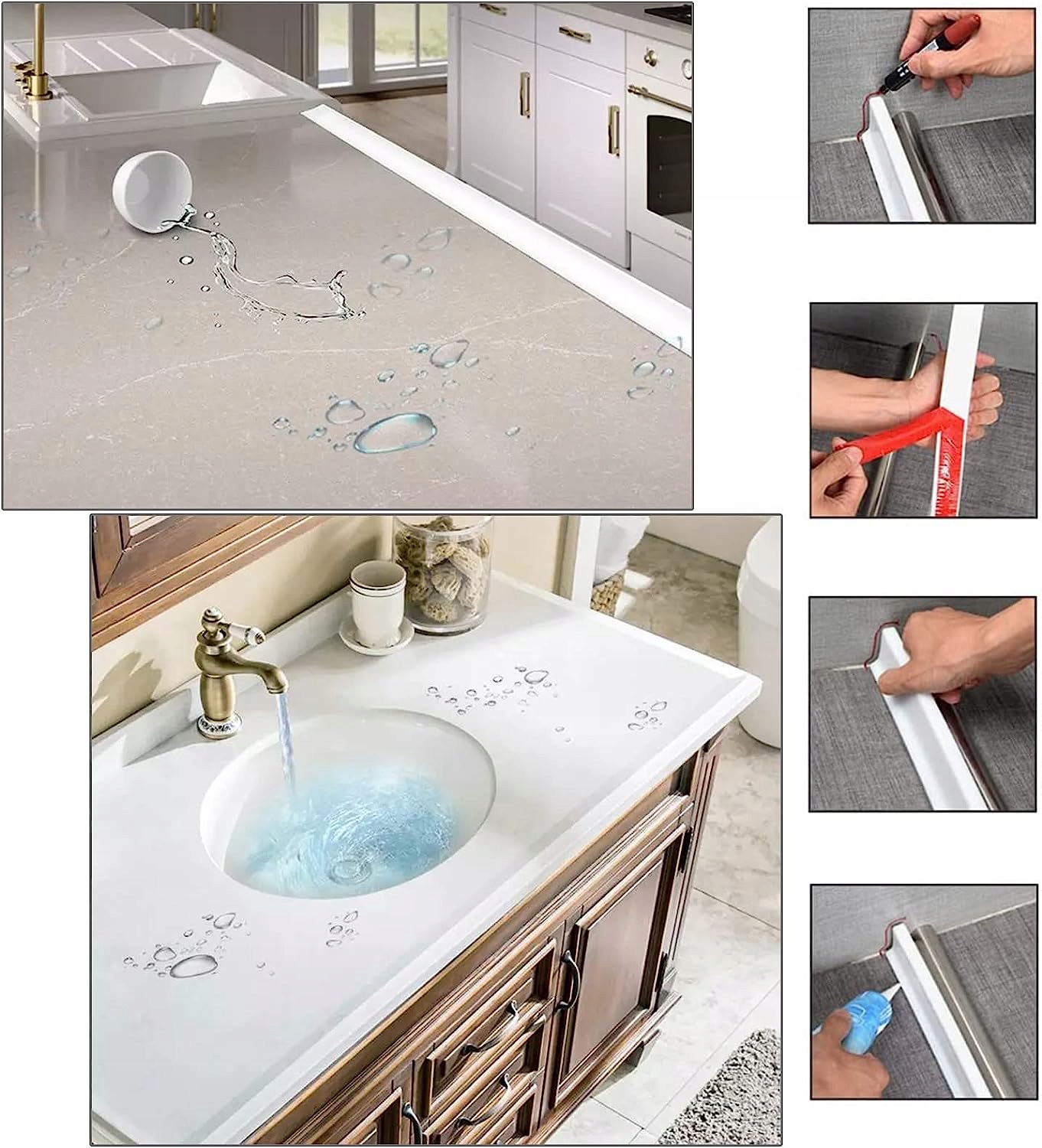4. (Простая установка и использование)🌊🌊🌊 Первый шаг — приклеить водоблокирующую ленту к полу, второй шаг — приклеить ее так, чтобы лента соприкасалась с поверхностью стены и местом, где она встречается с землей. (Совет: для двойной защиты мы предлагаем специализированный водостойкий клей), в конце просто сотрите излишки клея бумажным полотенцем.