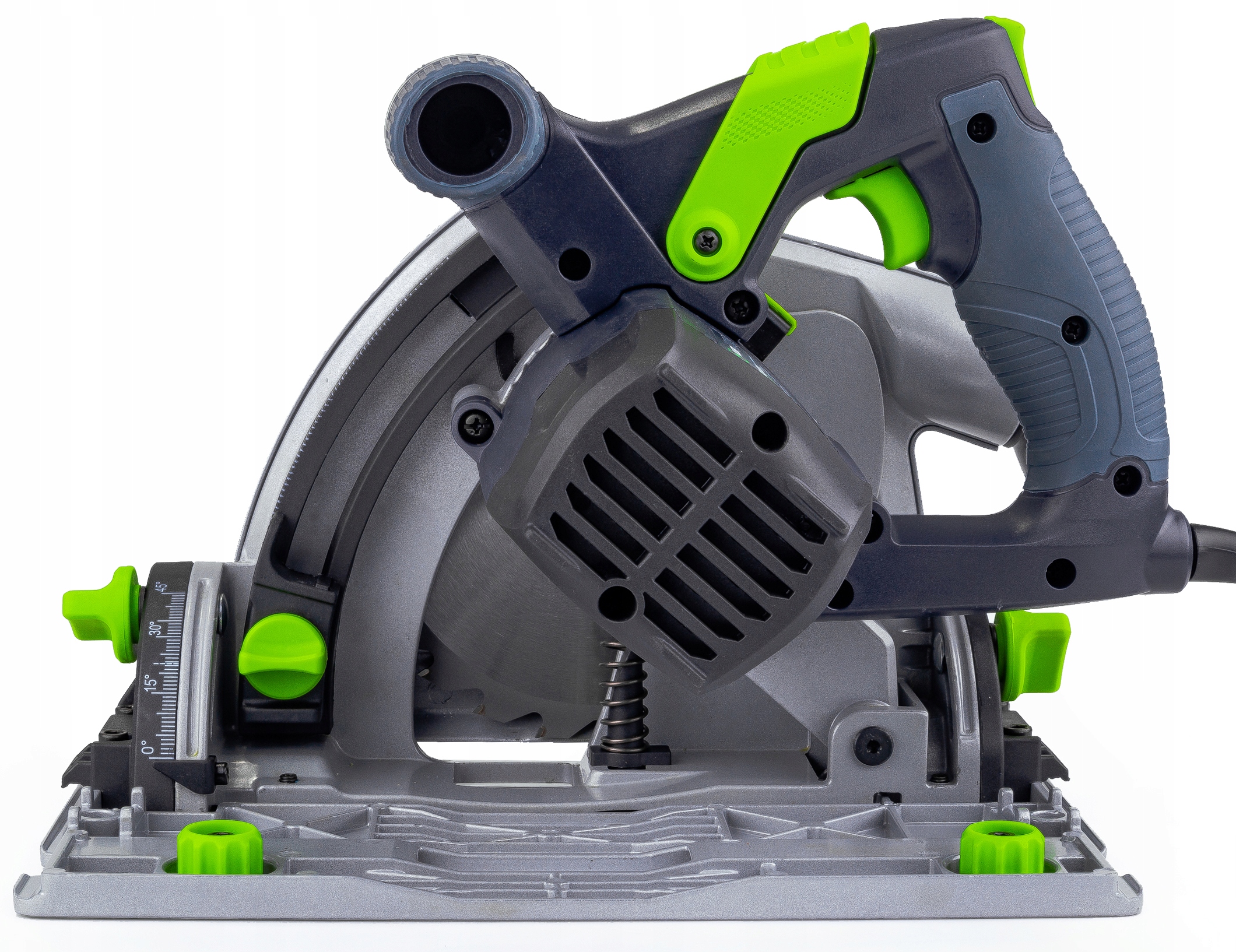 Без инструментов < б>регулировка угла наклона в сочетании с читабельными шкалами ускорит выполнение задач. Большой диапазон регулировки позволит решить задачи мастерской, связанные с погружной пилой