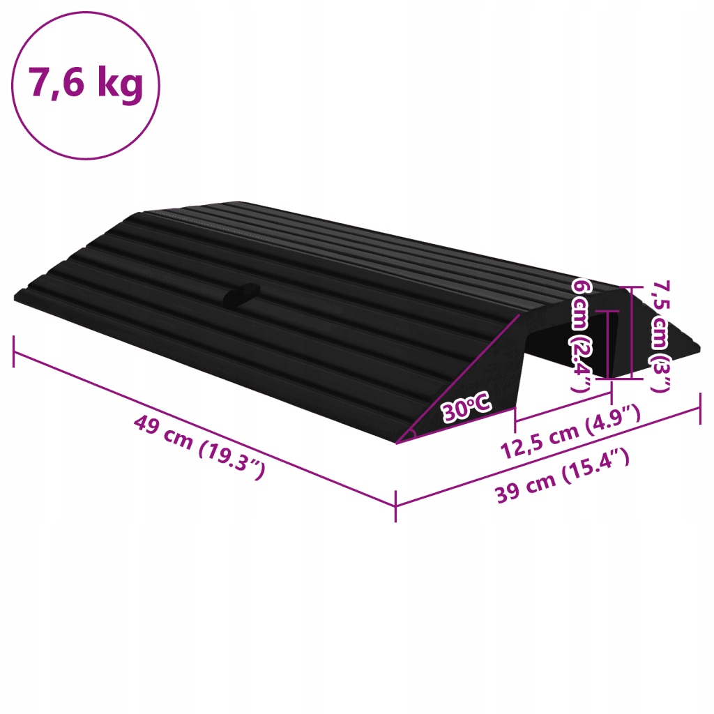 Пандус изготовлен из прочной резины, легкой, прочный и долговечный в течение многих лет использования. Его шероховатая поверхность также имеет противоскользящую текстуру, предотвращающую скольжение и скольжение при выезде за рампу.