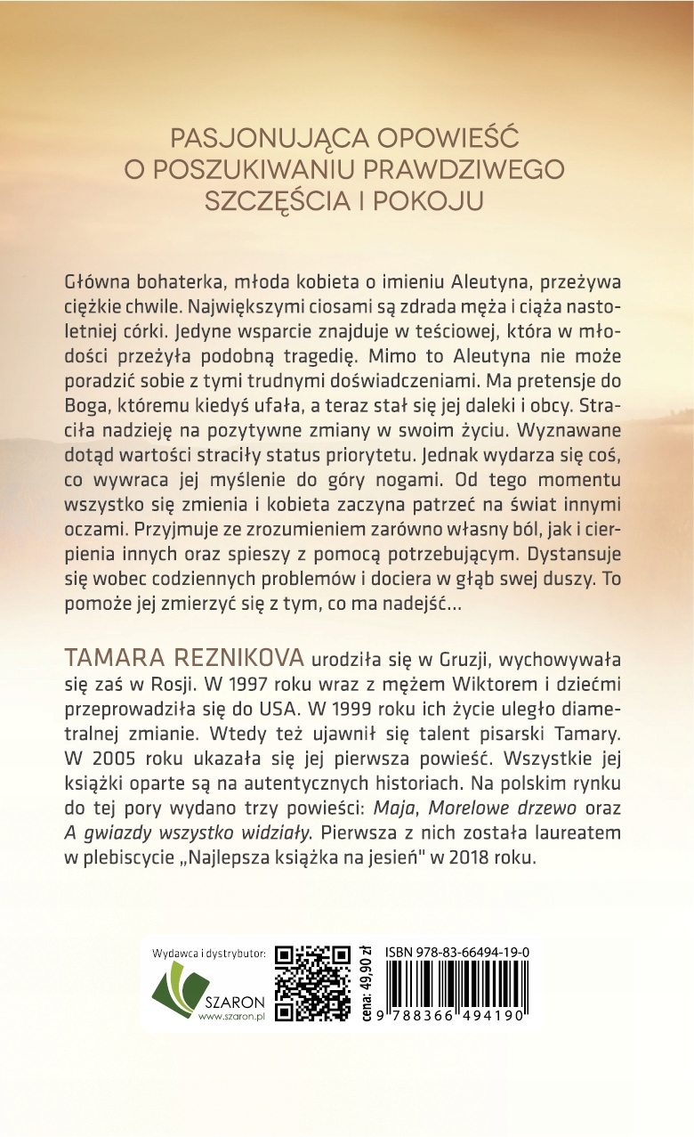 Тамара Резникова родилась и выросла в Грузии. в России. В 1997 году она переехала в США с мужем Виктором и детьми. В 1999 году их жизнь кардинально изменилась. Именно тогда его талант стал очевидным Текст Тамары. В 2005 году вышел ее первый роман. Все ее книги основаны на реальных историях. На польском рынке пока были опубликованы два романа: «Майя», «Абрикосовое дерево» и «И звезды все видели». Первая из них победила в плебисците «Лучшая книга осени». 2018.