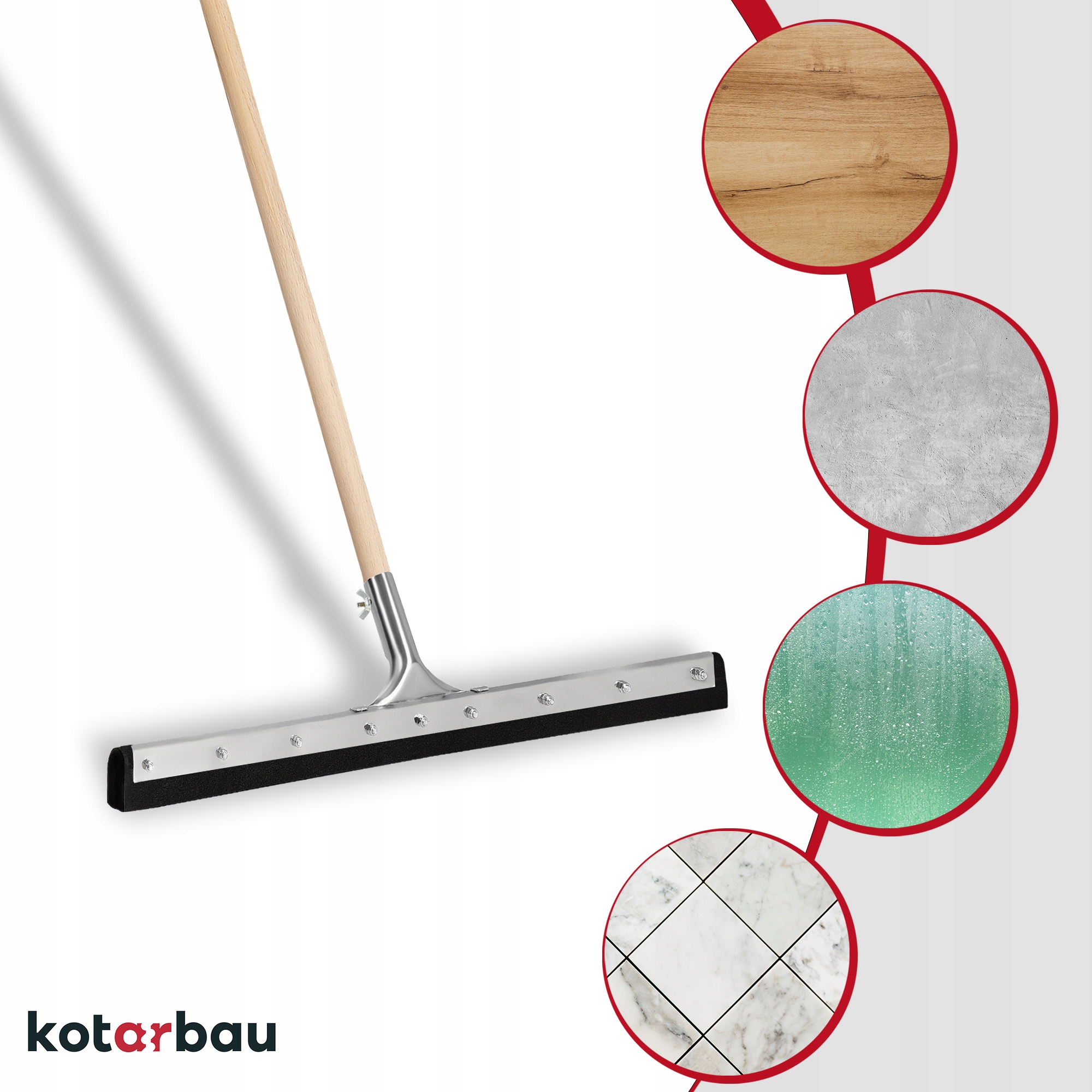Водоочиститель KOTARBAU гарантирует, что не оставит разводов и пятен на очищаемых поверхностях. Благодаря гибкой резине средство эффективно удаляет воду и грязь, достигая даже труднодоступных мест, всегда оставляя их сухими.