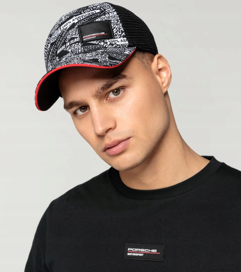 Расовый дух, стильный дизайн и качество в сочетании в одной коллекции фан -одежды Motorsport. Крышка изготовлена из 100% полиэстера из переработанного с печатью на всей поверхности, вдохновленной камуфляжем 911 GT3 R (992). Волейбольная секция обеспечивает освежающую вентиляцию, чтобы обеспечить холод для всех поклонников моторных видов спорта.