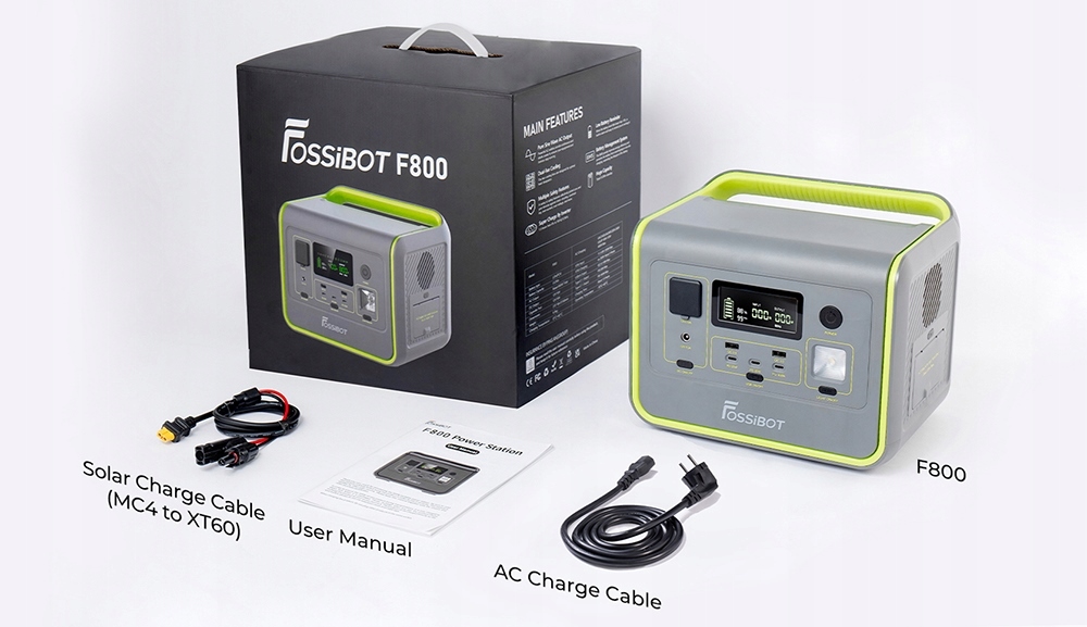 - Электрическая станция FOSSiBOT F800 оснащена долговечная батарея LiFePO4, выдерживающая более 3500 циклов, обеспечивающая надежное питание в течение десяти лет в кемпинге, дома, в автофургоне, в чрезвычайных ситуациях или в случае отключения электроэнергии