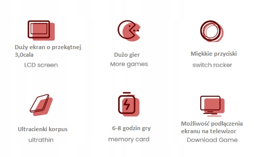 - Компактный размер - консоль маленькая, легкая и легко носить, идеально подходит для взрыва везде. Четкий дисплей, обеспечивающий хорошее качество изображения, идеально подходит для ретро -игр.