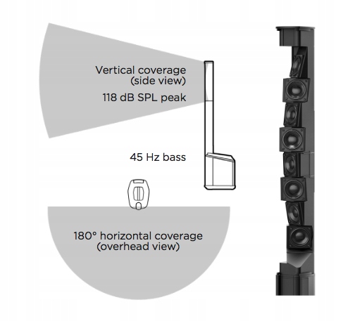Встроенный сабвуфер с уникальным драйвером RaceTrack обеспечивает мощные басы, оптимизированный центр тяжести и занимает мало места. Этот тонкий неодимовый динамик размером 10 x 18 дюймов обеспечивает производительность, не уступающую традиционному 15-дюймовому низкочастотному динамику большего размера. Она занимает мало места в вашем автомобиле и на сцене, что позволяет легко перемещаться из дома в машину или из машины на место выступления.