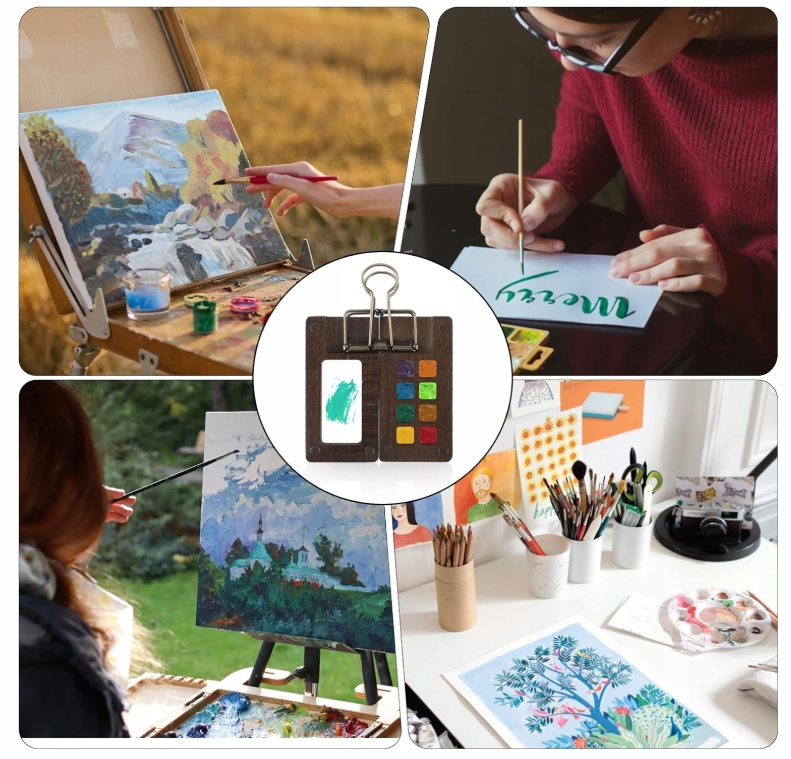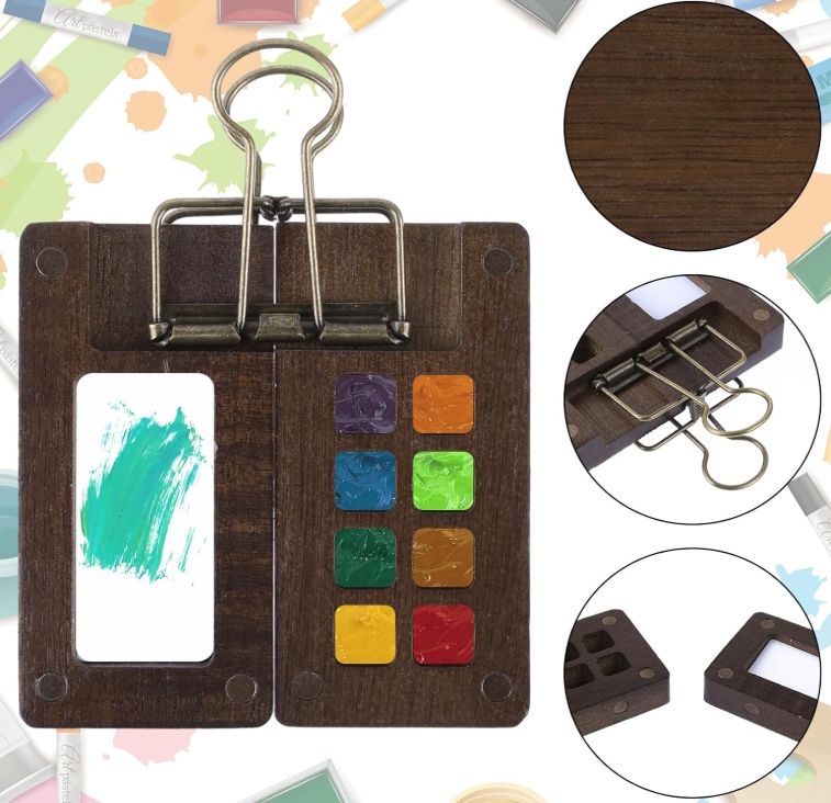 ✅mini акварельная палитра: t для портативной акварельной палитра с зажимом, прикрепленным к альбозу. Он изготовлен из высококачественной арахисовой древесины, он твердый, долговечный, а нефтяное пропитание защищает от воды. Полностью сделанный и разработан для городских ящиков и каллиграфов. Идеально подходит для акварели