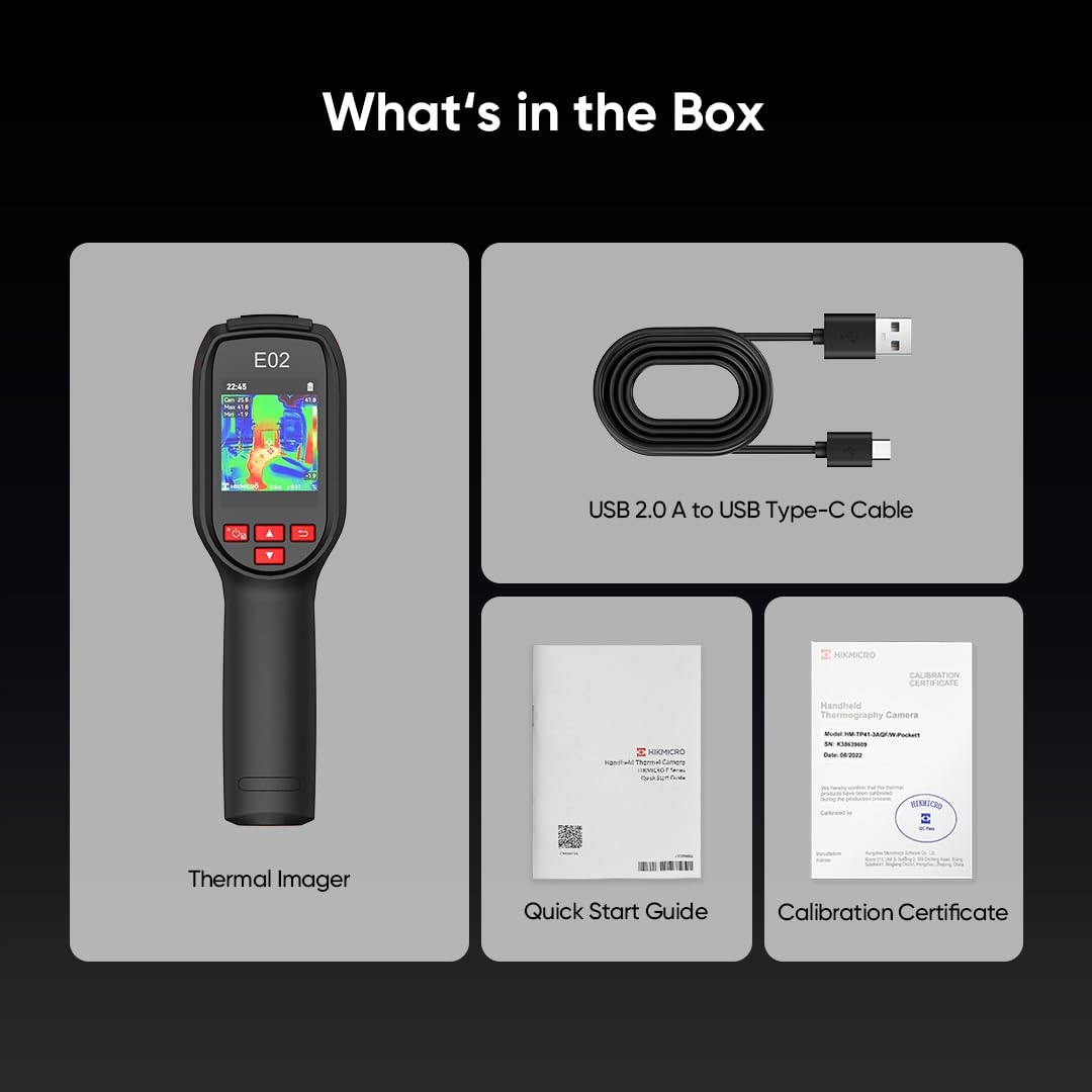 [Идеальный инструмент для поиска тепловых проблем]: незаменимый инструмент для домовладельцев и любителей делать все своими руками. Он может обнаруживать тепловые аномалии, в том числе отсутствие изоляции, утечки воздуха, повреждение водой, проблемы с системой отопления, вентиляции и кондиционирования, а также автомобильные, электрические и механические неисправности. E02 идеально подходит для более того: вы можете открыть для себя больше функций с помощью настольного программного обеспечения Analyser, которое предлагает радиометрический анализ изображений, функции составления отчетов и многое другое.