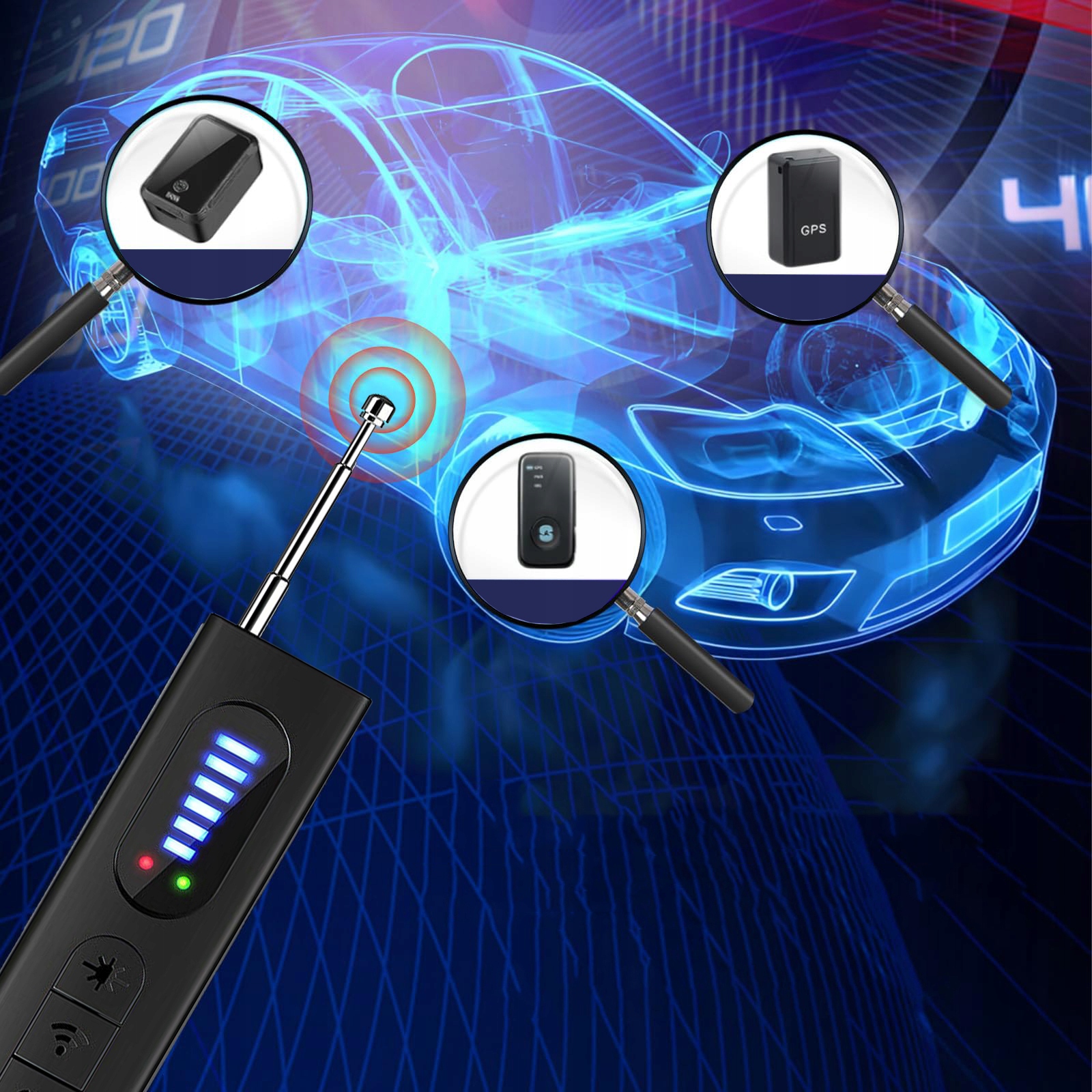 Детектор предлагает многоофункциональное обнаружение: 1. Магнитное обнаружение GPS . Используя различную чувствительность, вы можете быстро и тщательно найти источник сигнала.