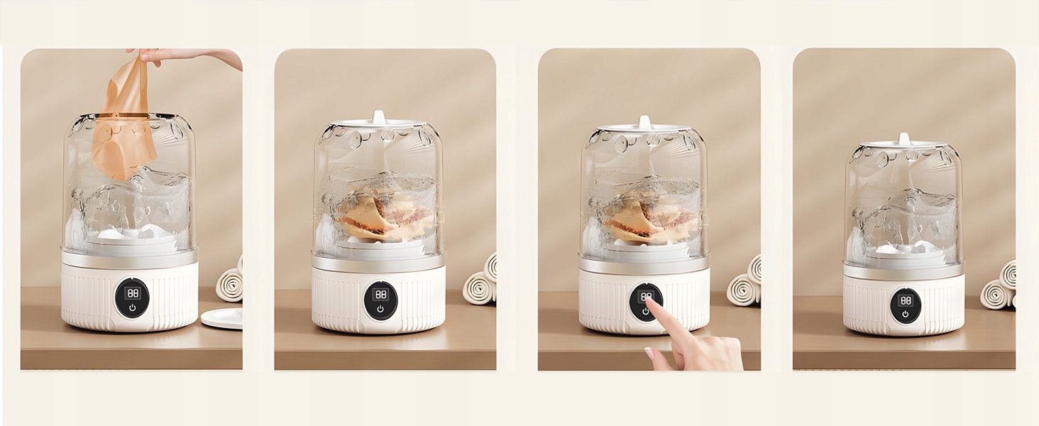 Наша портативная стиральная машина идеально подходит не только для стирки нижнего белья, но и бережно очищает деликатные ткани, такие как шелк, шерсть и кружево. Многие режимы стирки обеспечивают специализированный уход, сохраняя качество и долговечность одежды.
