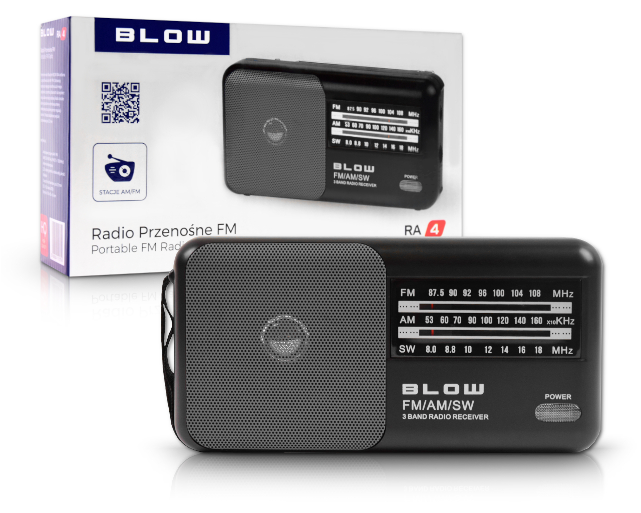 Принимает на частотах AM и FM. Радиостанция оснащена вращающейся телескопической антенной и потенциометром громкости. Кроме того, он имеет типичный вход для наушников 3,5 мм.